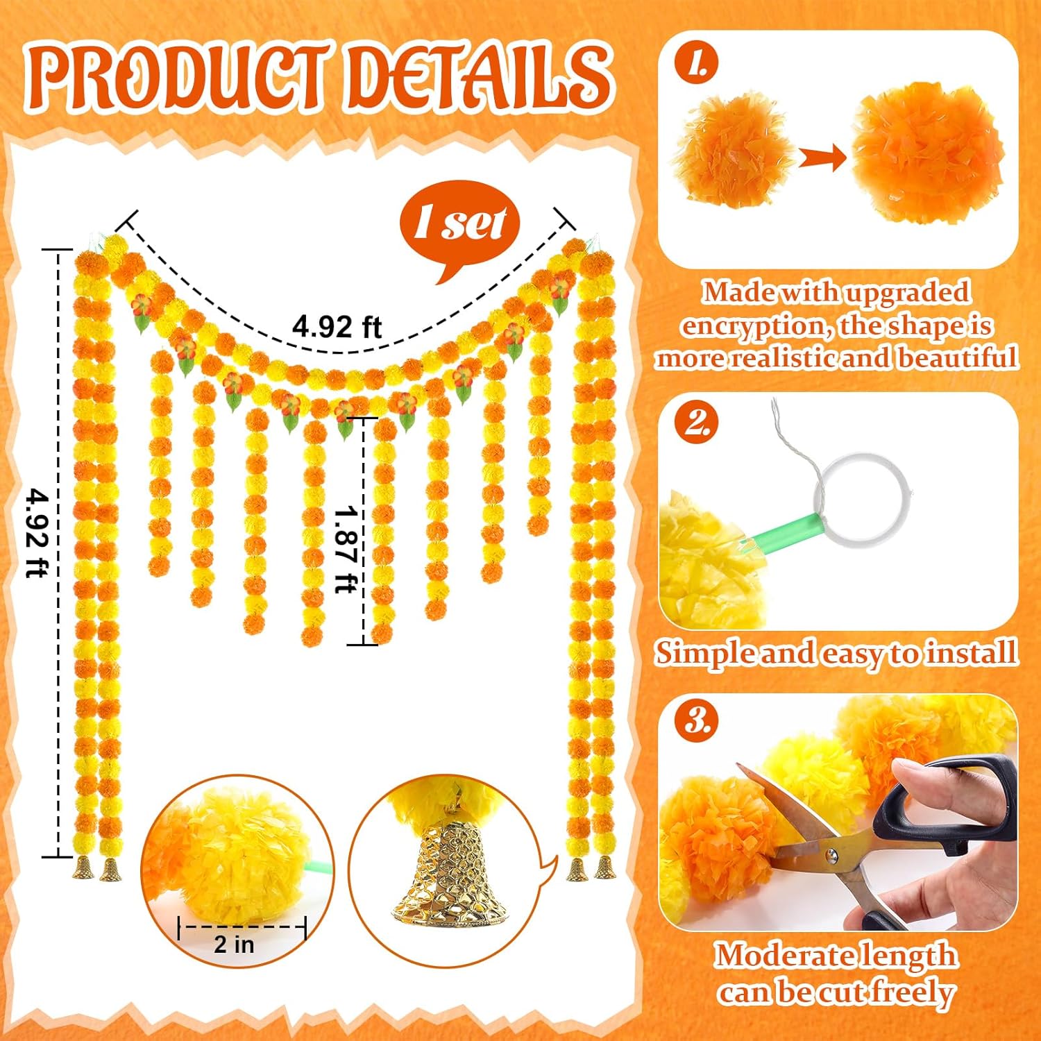 | Included Components | 1 x Orange and Yellow Marigold Tassel Garland |