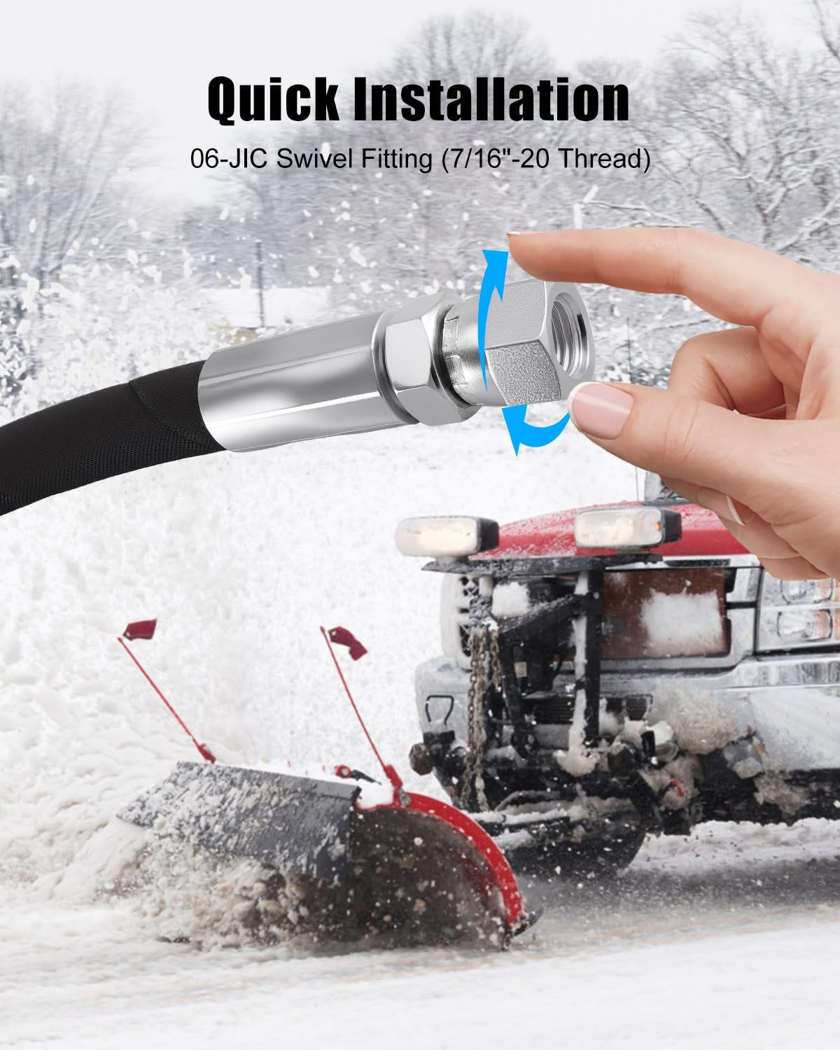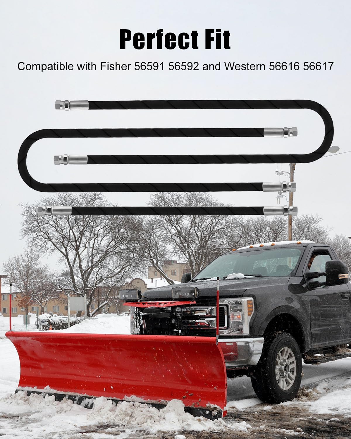 Product Specifications & Details:Material: High-Strength Synthetic Rubber, Metal FittingsHose Size: 1/4" ID (Inner Diameter)Hose Lengths: 42-Inch Angle Hos e & 16-Inch Lift HoseFittings: 06-JIC Swivel Fitting (7/16"-20 Thread)Compatibility: Compatible with Fisher 56591 56592 and Western 56616 56617 modelsBuilt with premium cold-weather rubber for extreme durabilityStays flexible and resists cracks in freezing conditionsMaintains excellent bend radius for reliable plow movementNo modifications neededKeeps your plow running smoothly with less downtime