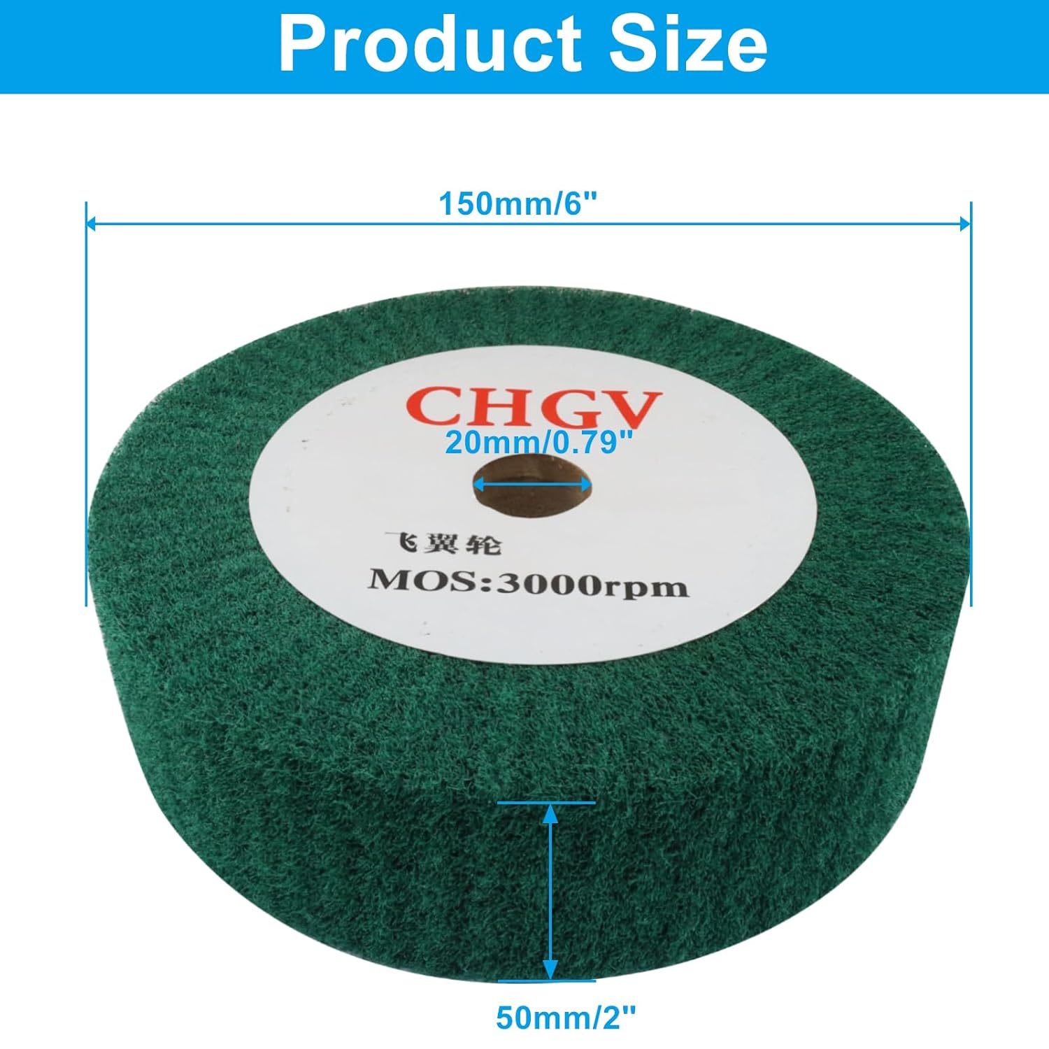 Suitable for surface treatment of various materials, especially stainless steel, aluminum, copper, iron, and wood, meeting various polishing needs.Specification:Color: GreenSize: 150mm x 50mmGrit: 240Package Includes:1 Pieces x Polishing Burnishing WheelUseful Tips:When using the Polishing Burnishing Wheel, it is important to work in a well-ventilated area and wear appropriate safety gear such as goggles and gloves.Please allow 1-3mm error due to manual measurement.Please allow slight color difference due to different monitor.