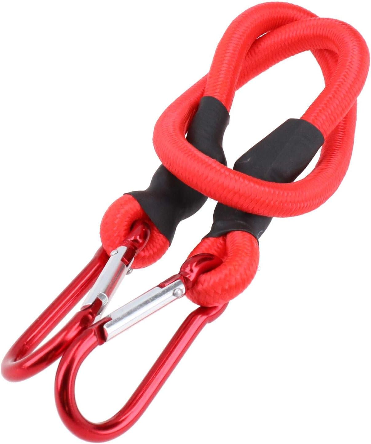 Professional Bungees with Snap Clip Carabiner for commercial or occasional use 24" Bungees This listing is for 6 x snap clip bungee 2 x Carabiner clips one at each end of the bungee Suitable for use with camping, in cars, vans, trucks, motorcycles, trailers etc... Strong heavy duty elastic helps secure loads securely and safely High strength spring loaded snap clips allow for secure load binding Ideal for securing over sized loads or wrapping around bigger bundles Use these cords for quick and convenient load binding Manufactured from multi strand rubber for strength and durability 10mm diameter heavy duty elastic cord provides maximum holding power and a constant tensionSPECIFICATIONS OF THE BUNGEE PACK SIZE - 6pc BUNGEE LENGTH - 24" / 600mm MAXIMUM STRETCH - 36" / 900mm BUNGEE WIDTH - 10mm