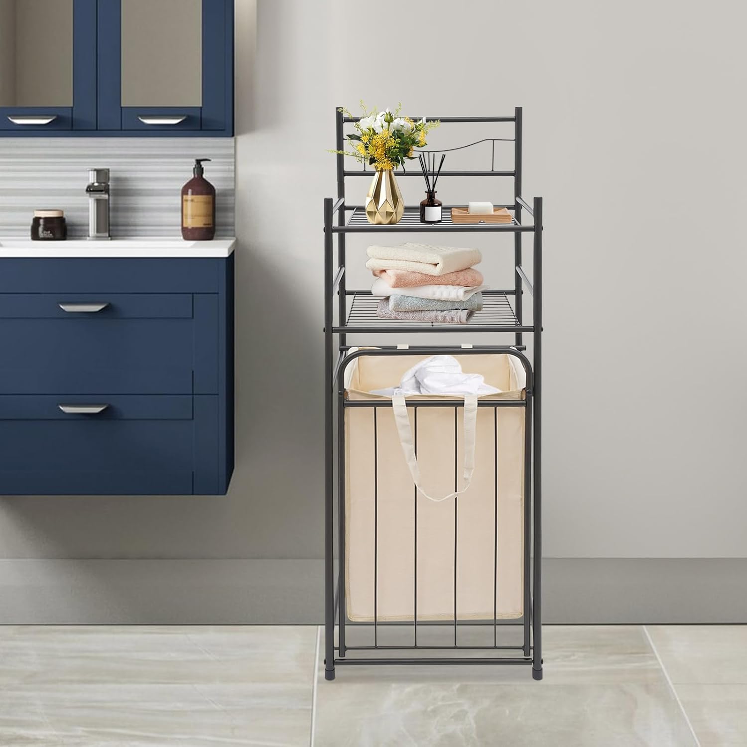 SpecificationsMaterial: Iron, Oxford ClothProcess: Spray CoatingColor: Black+Off-WhiteStyle: ModernMounting Type: Floor StandingAssembly Required: YesNumber of Tiers: 3Total Load Capacity: About 14kg/30.86 lbsTier Height: 18.2cm/7.2inLaundry Basket Size: 44*30*30cm/17.3*11.8*11.8inProduct Size: 38.5*35.5*105.5cm/15.2*14*41.5inPackage Size: 67.5*36.6*6.7cm/26.57*14.41*2.64inGross Weight: 3kg/6.61 lbsNet Weight: 2.62kg/5.78 lbsPackage Included1*Laundry Storage Rack1*Laundry Basket1*English Installation DiagramOther Accessories for AssemblyNotes1. Please carefully check the dimensions before purchasing.2. Please note that this product does not contain clothes, toys, toiletries, or other items