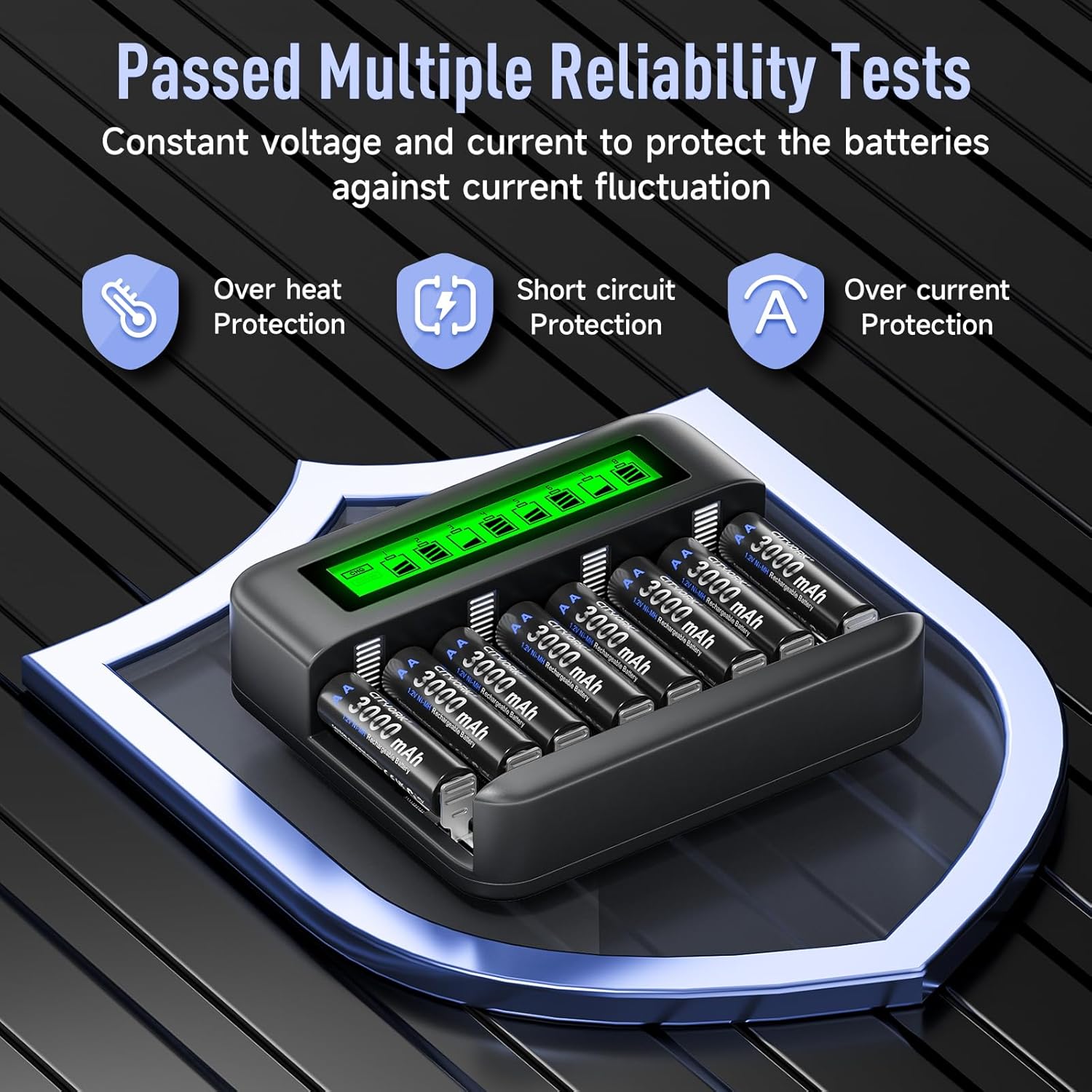 CITYORK 4 Pack Rechargeable C Size Batteries with 8 Bay AA AAA C D Universal Battery Charger