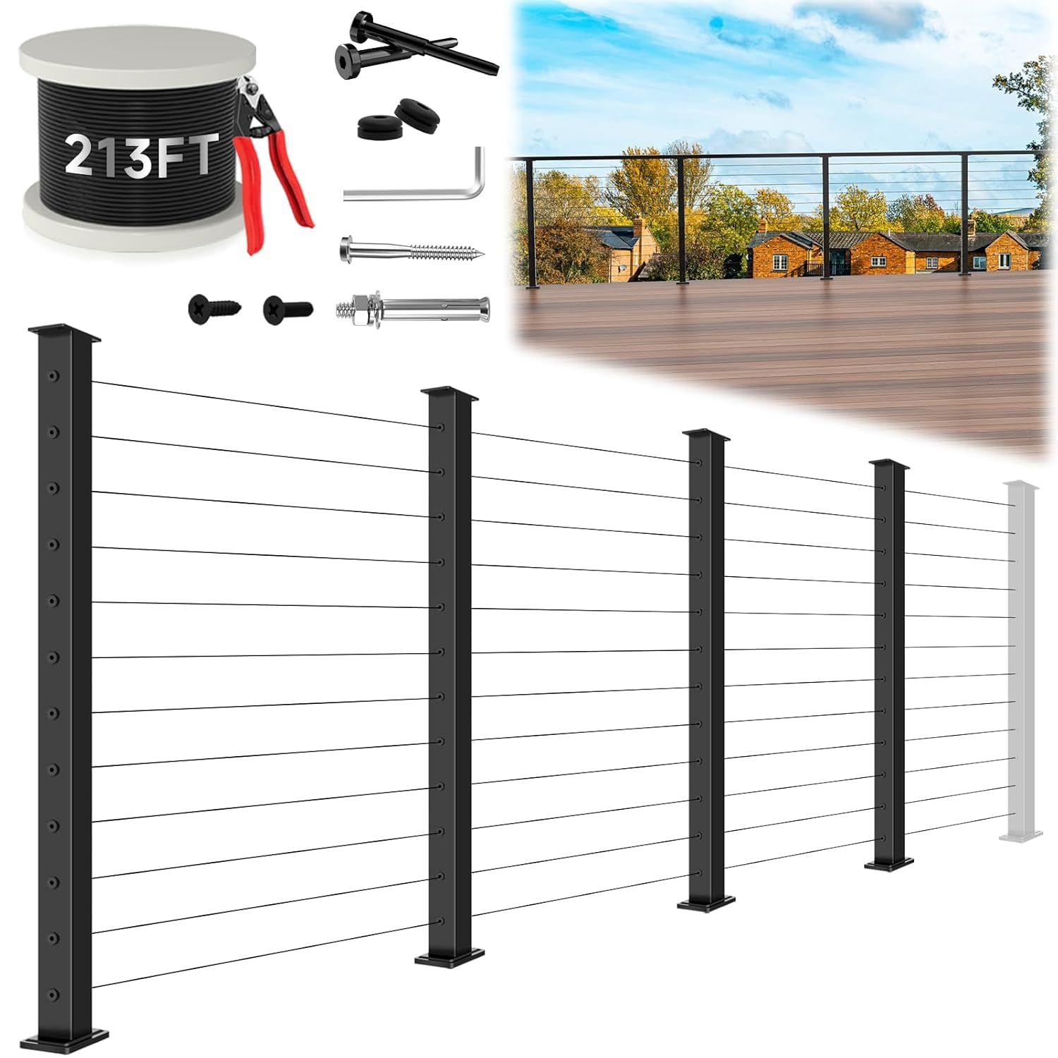 • Safety Compliance: Our 42-inch wire railing post meets building codes for both commercial and residential use, featuring 3” cable spacing and a total height of 42” (when paired with your handrails). It supports a maximum cable run of 20 ft and post spacing of 4 ft, ensuring safety and proper cable tension. Please verify your local building codes before purchase