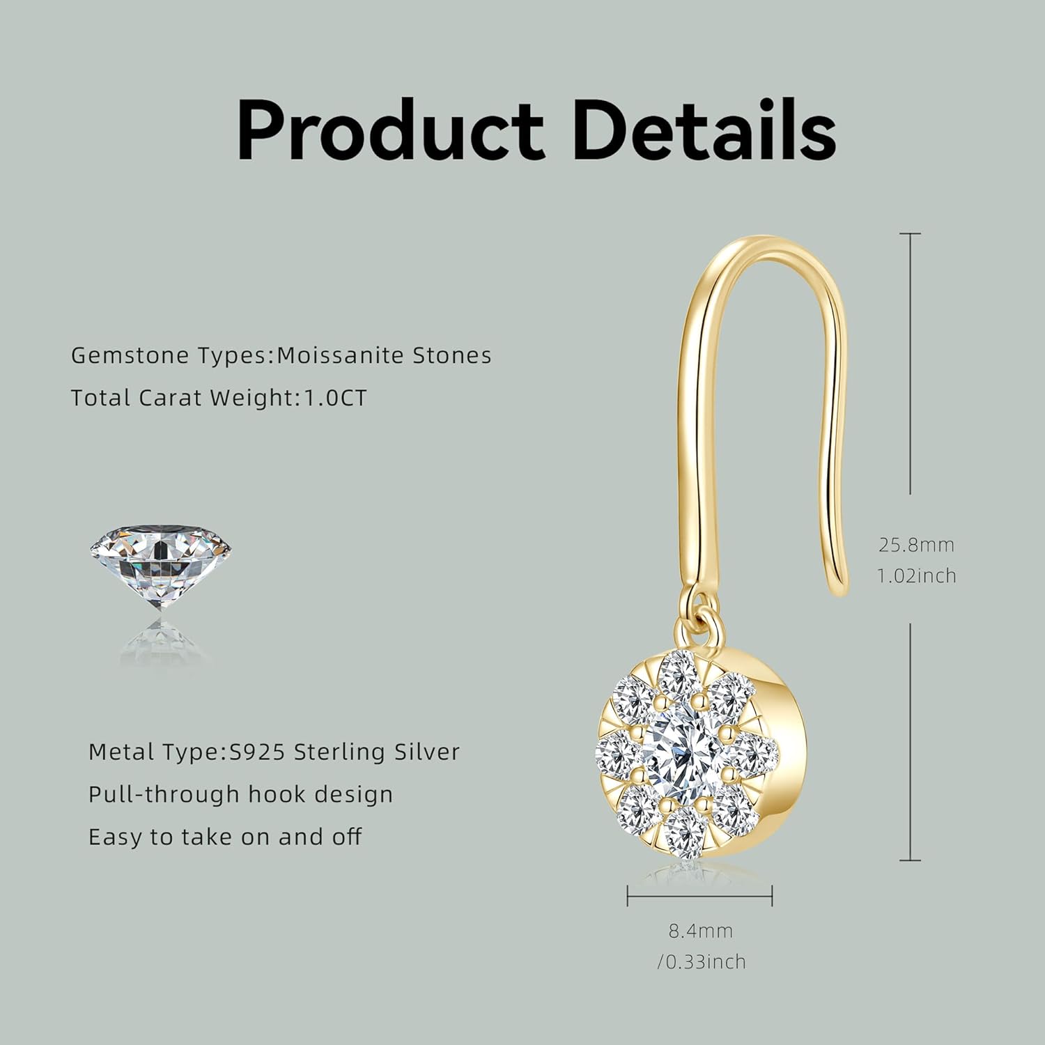 • Real Moissanite GRA Certificated: Dazzle with every turn in these exquisite sterling sliver dangle earrings for women, crafted from sterling silver with 14k gold. Featuring GRA-certified, lab-created Moissanite in a brilliant tiered design with a total of 1.08ct (D color, VVS1 clarity), they offer more sparkle than a diamond at exceptional value. The dainty 25.8mm French wire drop ensures elegant, secure wear. Hypoallergenic, tarnish-resistant, and effortlessly glamorous, these are the perfect dangle earrings for any occasion