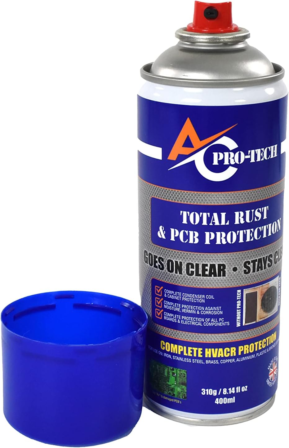 All in one corrosion and complete HVAC protection Aerosol coating, total rust protection for your HVAC coils, all the cabinets, plastics and even protection for the PC Boards, PC Boards can be protected from humidity, Salt laden air and pests like lizards, ants, frogs and all the other critters that damage PCB's. Can be used to help prevent Formicary corrosion on new evaporator coils. Anti-Corrosion Coating Rust Coating Spray Rust inhibitor Rust preventor HVAC Rust Spray