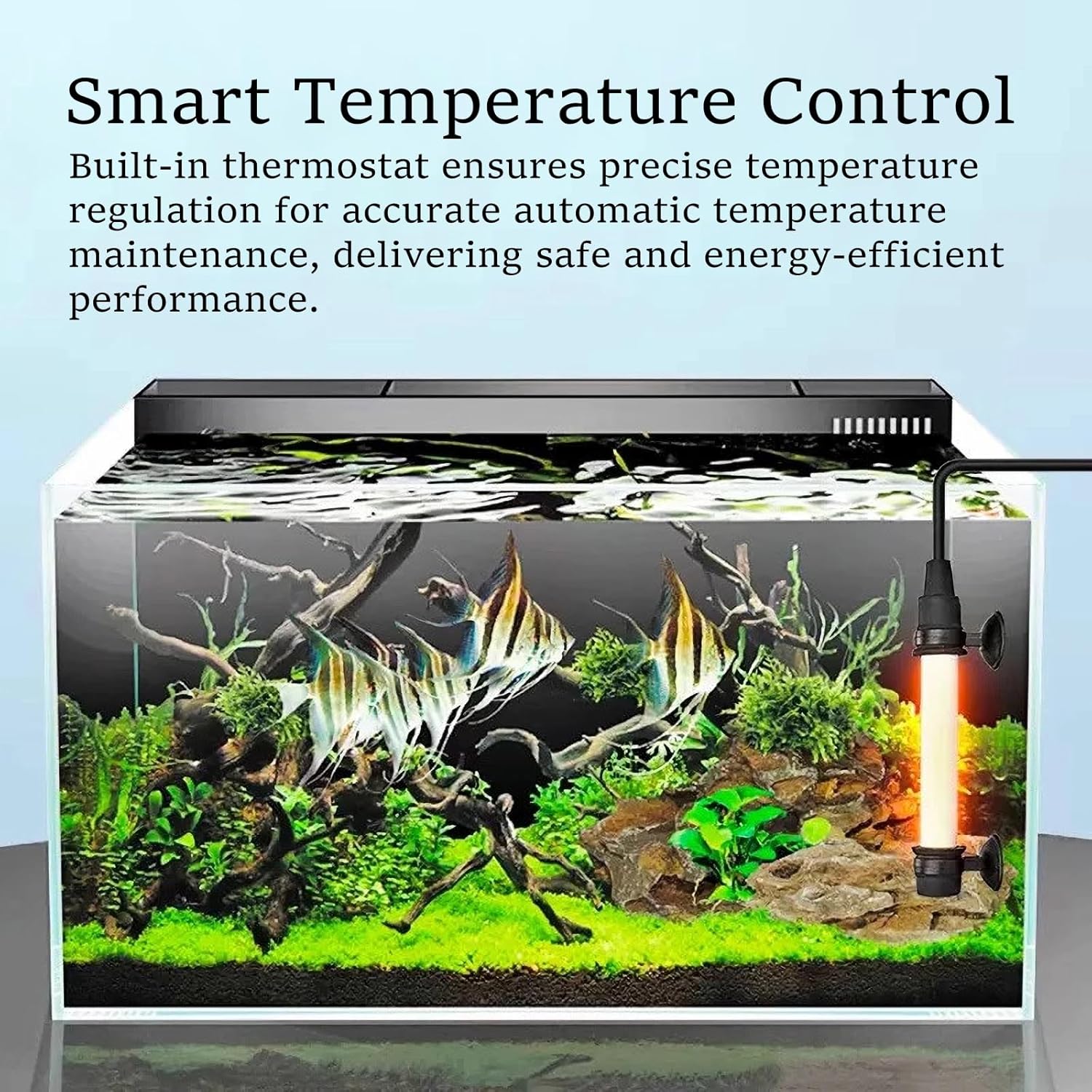 Energy-saving and eco-friendly design: Features a low-power, high-efficiency heating structure that minimizes energy waste while maintaining performance, meeting modern aquarium equipment's green operation standards. Waterproof and Electric Shock Protection: Fully sealed insulation technology combined with an automatic leakage cutoff system effectively eliminates the risk of electric shock in water, making it particularly suitable for home use and sensitive aquatic environments. Durable Explosion-Proof Materials: The heating tube utilizes reinforced quartz glass and a corrosion-resistant outer shell, offering high-temperature resistance and resilience against water pressure fluctuations to enhance product longevity and reliability. Visual Status Indication: Built-in LED operation indicator displays real-time status and alerts for malfunctions, enabling remote monitoring of heater performance. Wide Water Compatibility: Suitable for freshwater, saltwater, and various aquaculture environments. Multiple specifications meet heating needs from small to large ornamental tanks.