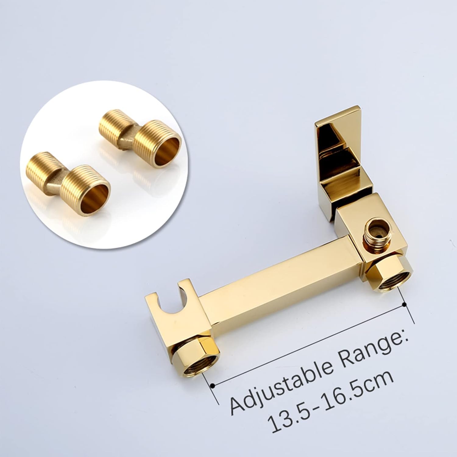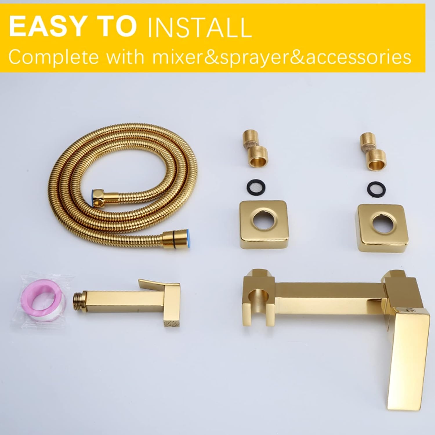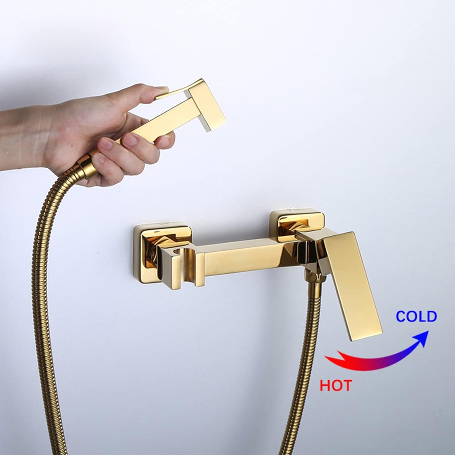 SprayersSolid Brass Shiny Titanium Gold Handheld Toilet Bidet Sprayer Square Design Douche Kit Hot And Cold Shower Bidet FaucetSpecification:Product: Handheld Bidet SprayerProduct Type: Bidet Toilet Spray GunStyle: Modern SimplicityInstallation Type: Wall-MountedConnection Hole: 2 HolesColor: Titanium GoldMaterial: Bidet Sprayer: Solid BrassShower Hose: Length 1.5m Stainless Steel Shower Hose, Brass NutsMixer Valve: Solid BrassSpool: Ceramic CartridgeHot And Cold: YesFinish: Titanium Gold Electroplated Products Include: Handheld Bidet Sprayer + Stainless Steel Shower Hose+ Hot And Cold Water ValveAvailable For:-Wash Baby Diapers, Wash The Car, Bathe Pets, Watering Plants-Flush Toilets, Tubs, Mops, Wall Corners Etc-Personal Hygiene Clean For Anyone With Limited Mobility And Elderly Adults.Notice: Please Check Whether All Accessories Are Complete Before Installation. Size And Weight Due To Personal Method With Measuring Tool Is Different, So There May Be Slight Error, Hope You Can Understand, Thank You. As The Production Of Different Batches, The Product Weight Will Be About 30-100 Grams Of Bias, It Is Normal.