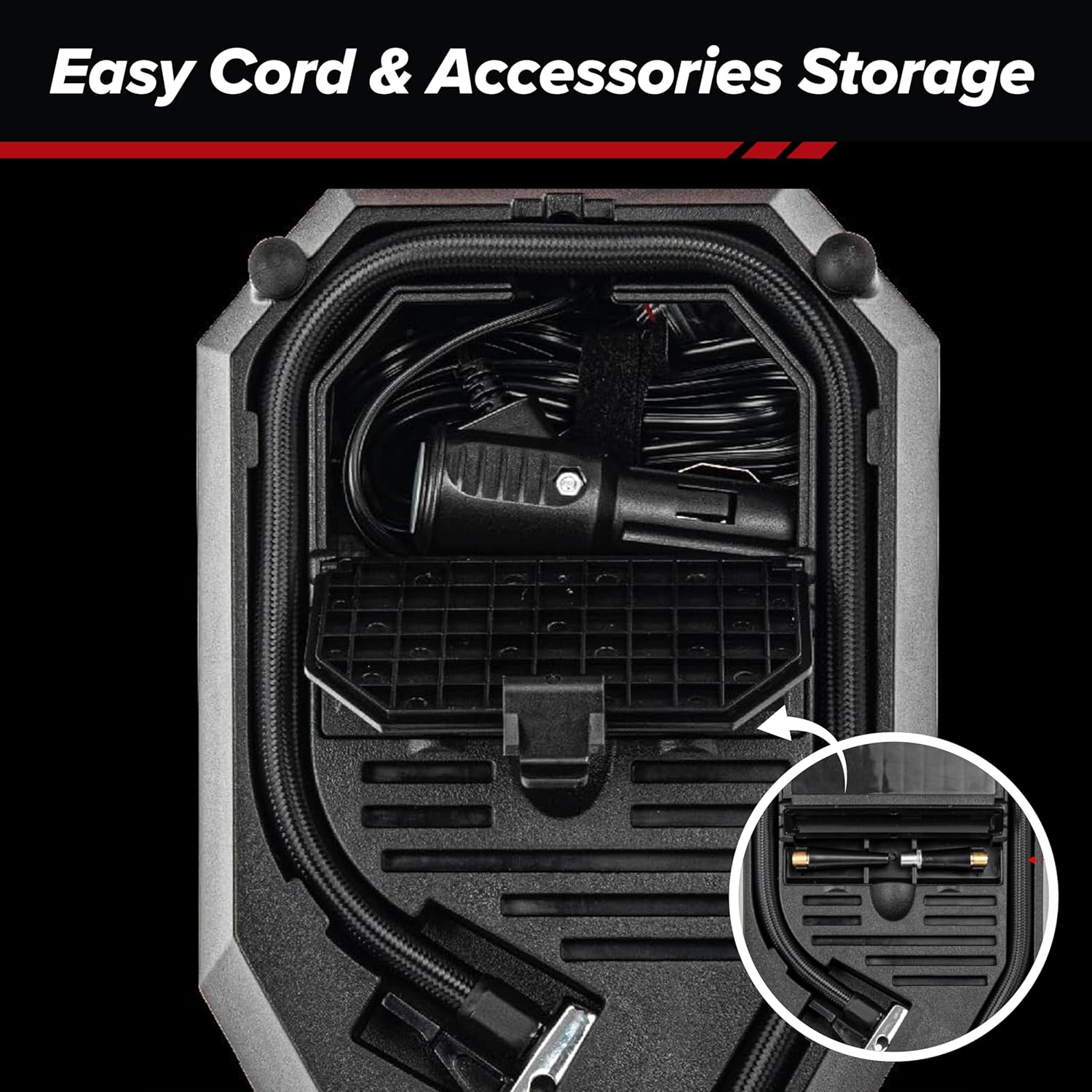 | Item Type Name | Bullseye 12V DC Tire Inflator Rapid 2 Minute Inflation, Auto Shut-Off, Max 150 PSI, Easy Cord Storage, Digital Pressure Gauge, LED Display, Accessories, Cigarette Lighter Charger as seen on TV(Yellow) |