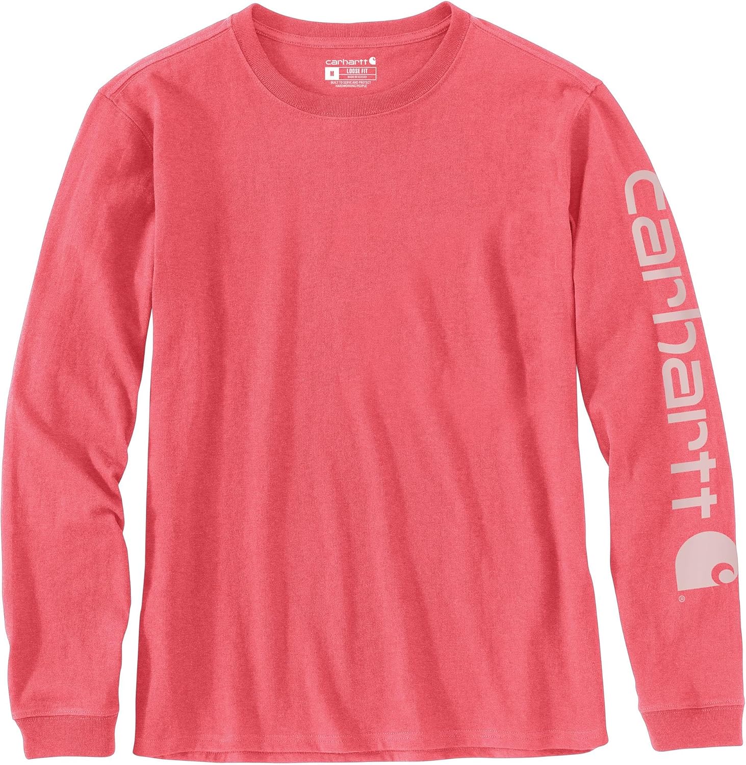For well over a century, the Carhartt name has stood for quality and dependability on the job. This women's long-sleeve t-shirt is made of heavyweight cotton jersey and features a Carhartt logo on the sleeve.