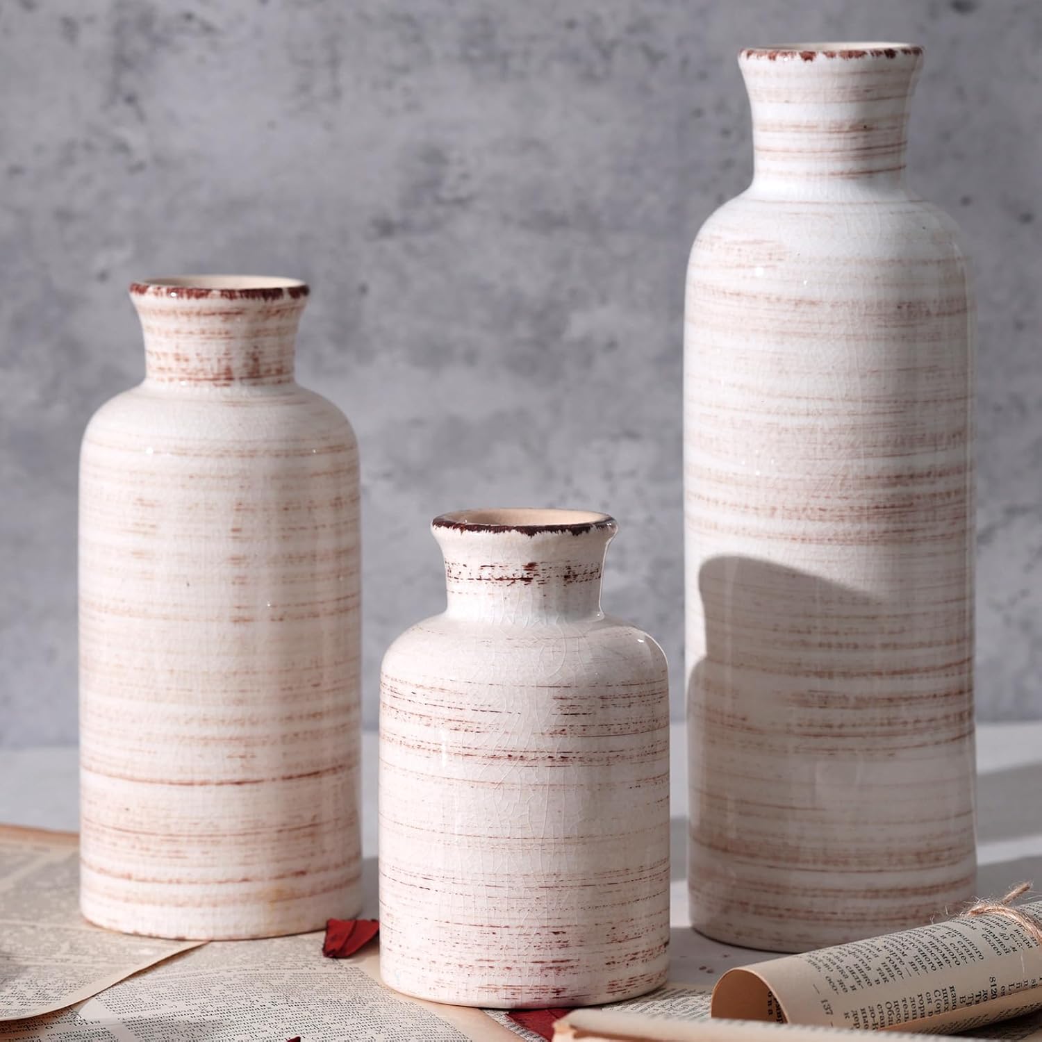 This ceramic vase set includes three vases of different sizes in matching colors, perfect for display together or individually to add a vintage touch to your home decor. Crafted from high-quality ceramic, the vases feature unique crackle glaze and a beautiful gradient effect, adding depth and charm to any space. Easy to clean and maintain, they are ideal for placement in living rooms, bedrooms, offices, and more. These vases make excellent decorative accents or gifts for birthdays, housewarmings, weddings, anniversaries, and other special occasions.