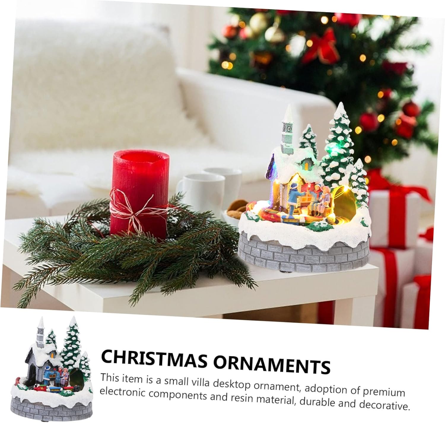 Package List 1 x resin luminous house Characteristics - Color: Assorted Color Xmas Resin Decor. - Size: 16.00X14.00X20.00 cm/ 6.29X5.50X7.86 inch Resin Luminous Craft. - Material: Resin LED Light House. - Battery: 3 AAA Batteries (Not Included) Rein Glowing Villa. - This small villa that looks piled with snow can give you a Christmas feeling Christmas LED Light House. - It will light up on the villa when you turn on its lights, which will be particularly eye-catching Resin. - Made of resin materials, they are , , lightweight to use Christmas Luminous House. - It featuring small villa piled with snow, which can can give you a Christmas feeling Xmas Luminous House. - It is winter parties, festivals, weddings, home or garden decorations, creating a romantic atmosphere for the upcoming Christmas or holiday parties Resin Glowing House.Goods DescriptionChristmas LED Light House This item is a small villa desktop ornament, adoption of electronic components and resin material, and decorative.Christmas Luminous House It featuring small villa piled with snow, which can can give you a Christmas feeling.Xmas Resin Decor Easy to operate, just turn on the