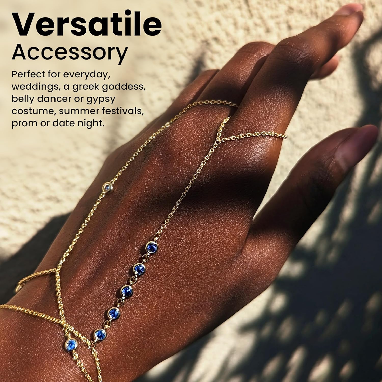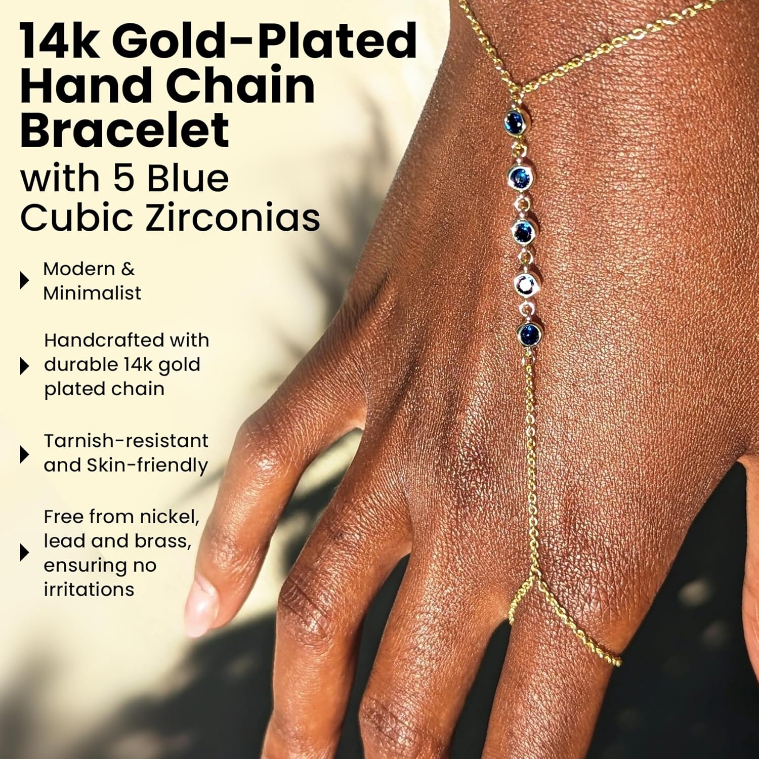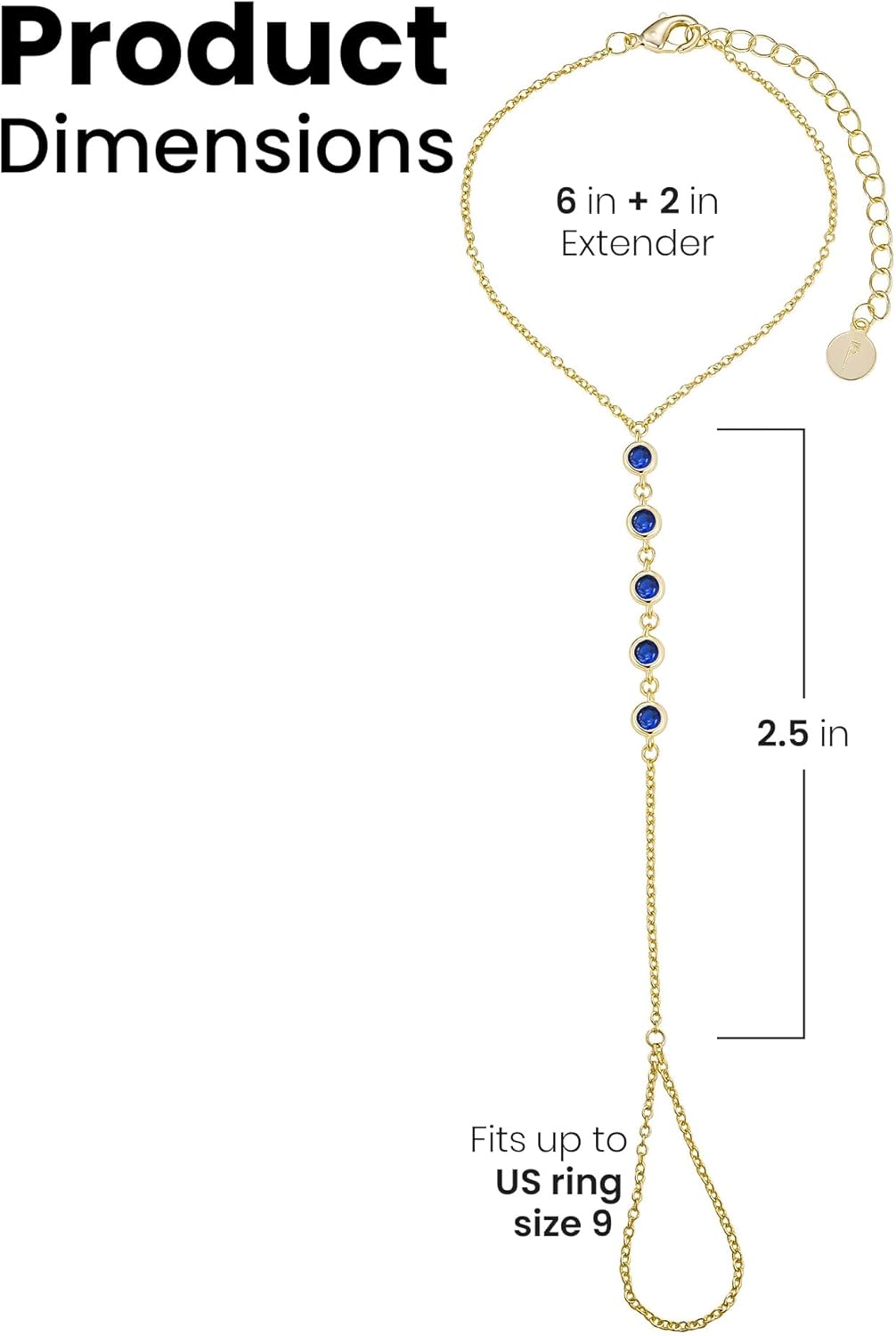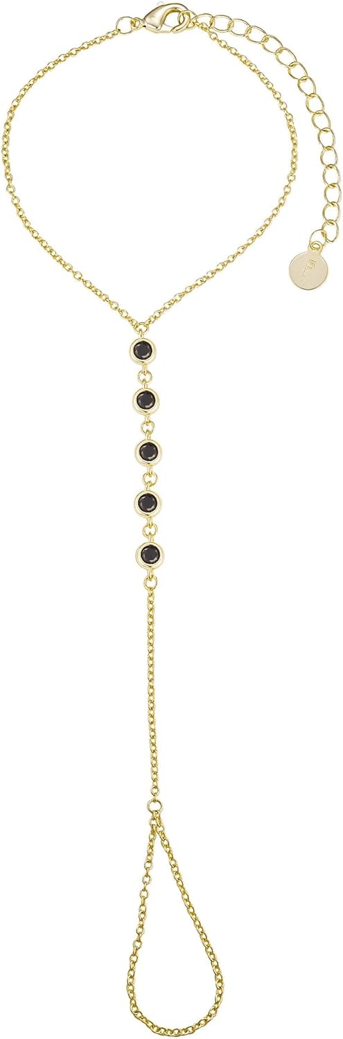 Feel like a goddess with the Faire de la Mode CZ Hand chain Ring and Bracelet Chain. This hand chain ring bracelet for women features sparkling and colorful cubic zirconia and comes in a 14k gold-plated brass finish. Its chic, minimalist design adds a touch of glamour to your everyday look or special occasions like weddings, festivals, and date nights. Crafted with an anti-tarnish layer and skin-friendly chain, this gold-plated hand chain is free from lead and nickel, ensuring comfort for sensitive skin. It’s adjustable from 6 to 8 inches, fitting ring sizes 4-8.. Ideal for gifting, this ring to bracelet hand chain jewelry for women makes a thoughtful present for bridesmaids, wives, girlfriends, daughters, or best friends. Ideal for birthdays, anniversaries, Mother’s Day, and other special occasions, this bracelet with ring attached for women is a timeless accessory that will be cherished. Indulge in elegance and experience sophisticated beauty with the stylish and stunning Faire de la Mode Hand Chain.