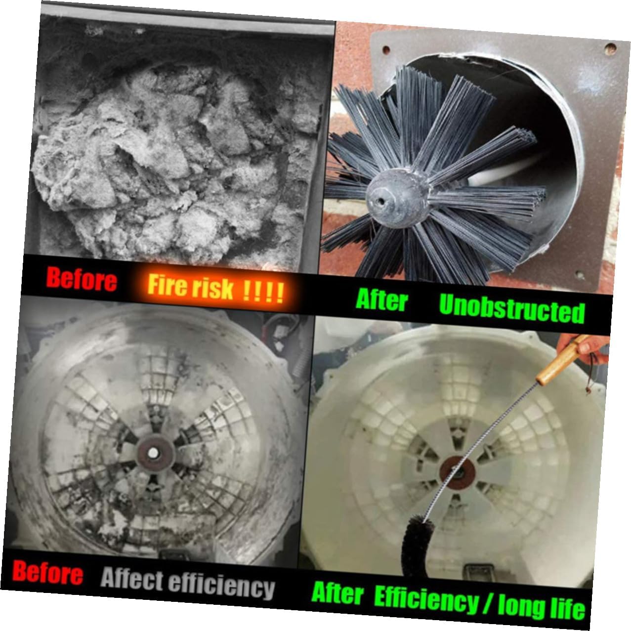 Package List 4 x rods 1 x brush head Characteristics -Product Info:Cleaning brush - Size: 61.00X2.00X2.00cm/23.97X0.79X0.79inch. - Material: Nylon, galvanized iron. - The design is simple in structure, easy to install. Very practical for home use lint cleaner for dryer vent. - Improving cloth dryer working performance by using this brush to cleaning up lint and dust in dryer vent, duct and exhaust port dryer lint brush vent cleaner. - This efficient dryer vent brush can be used with or without a power drill and will help you achieve professional results chimney sweeping tool. - - Removing lint buildup from your dryer duct helps reduce drying time and dryer performance, while extending the life of your dryer dryer vent cleaner. - Easy to use with simple instructions, this dryer vent cleaning kit delivers superior results and will help you prevent costly repairs chimney brush cleaner.Goods Descriptionchimney brush It is made of premim material, flexible, sturdy and to use.fireplace chimney cleaner Provide multipurpose tool for cleaning your dryer, duct, chimney, vent, , and etc.dryer lint remover This is a dryer vent cleaning brush set