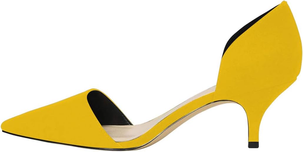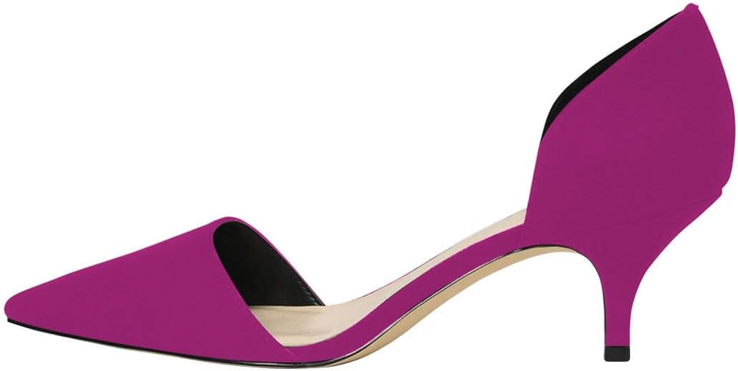Product Features: Material Type: Synthetic Leather/Faux Suede. Toe Style: Closed Pointed Toe Heel Type: 2.0-2.8 inches,5-7cm. Medium Kitten Heels Occasions: Business, Office and Meeting. Easy To Match: These d'orsay pumps are composed of the closed pointed toe, medium kitten heels and slip on style, it's easy to match your trousers or any outfit. Modern medium heels are efficient to wear all day and night, it fits the true to size. About Us: FSJ is a brand of Footwear (both Women and Men Shoes) in the field of Fashion Industry, having more than 20 years production experience of various shoes, and there are over 400 versatile products on your option,providing customized service to our customers. Design your dream shoes: Leave your information of the material you prefer, the heel height(platform height), color, your foot length/width, and best to have a picture. Then we will send you the quotation. Once the order is confirmed and paid, factory will get started. Notice: As for scattered warehouses, please be informed that your packages may be shipped in batches. ----Funny She Jill