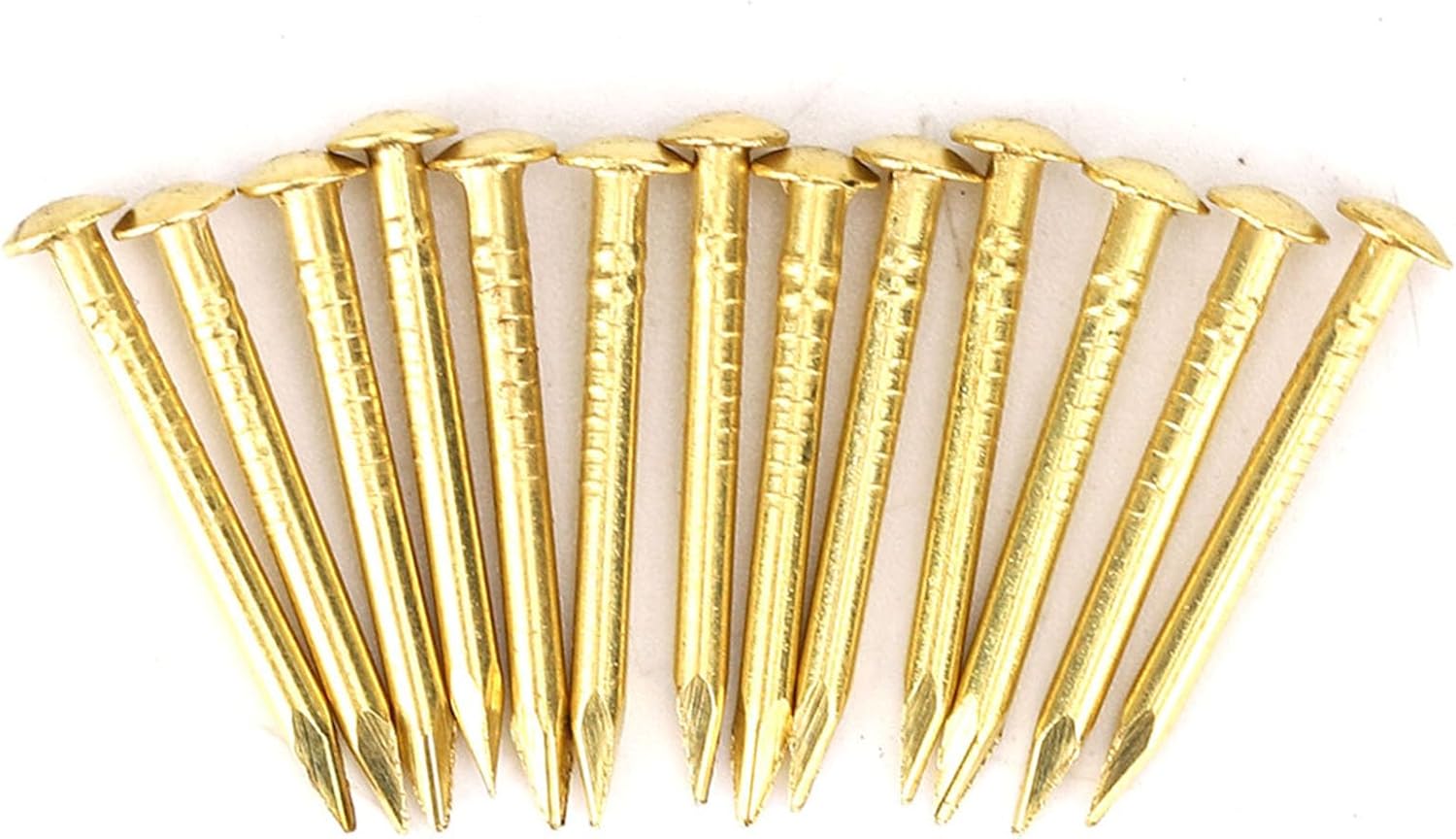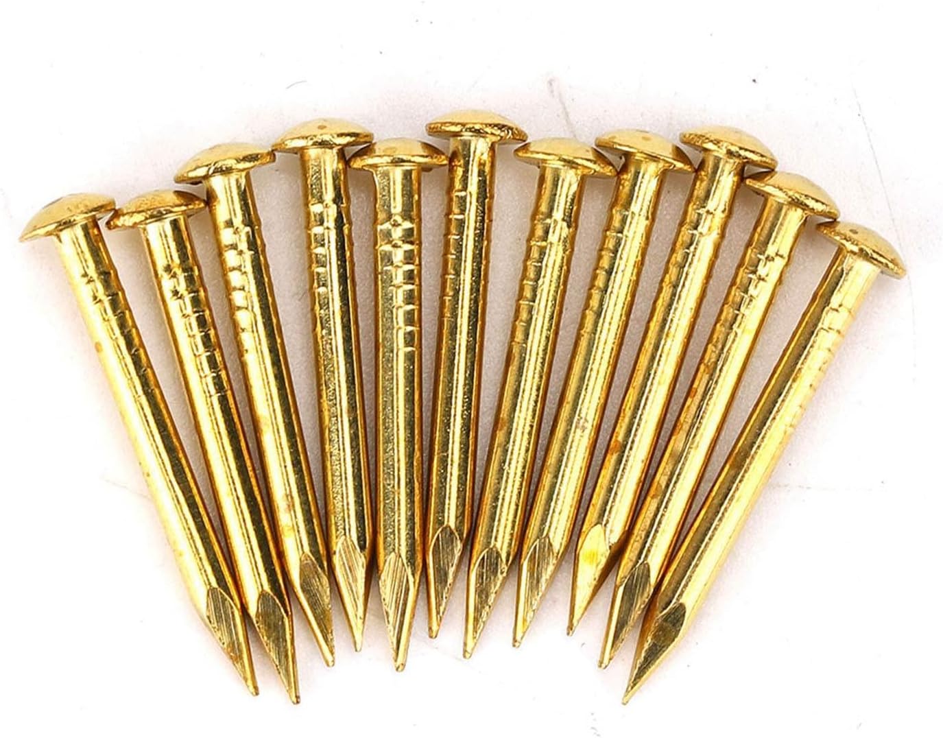 Item Type: Round Head NailMaterial: BrassColor: BrazenOptional Style: 22mm Length Thicker, 15mm Length, 18mm Length, 10mm Length Length 10mm: Size: total length 10mm, nail diameter about 1.5mm, cap diameter about 3mmLength 15mm: Size: total length 15mm, nail diameter about 1.5mm, cap diameter about 3mmLength 18mm: Size: total length 18mm, nail diameter about 1.3mm, cap diameter about 2.8mmLength 22mm thicker: Size: total length 22mm, nail diameter about 2mm, cap diameter about 4.4mmPackage List:100 x Round Head Nail