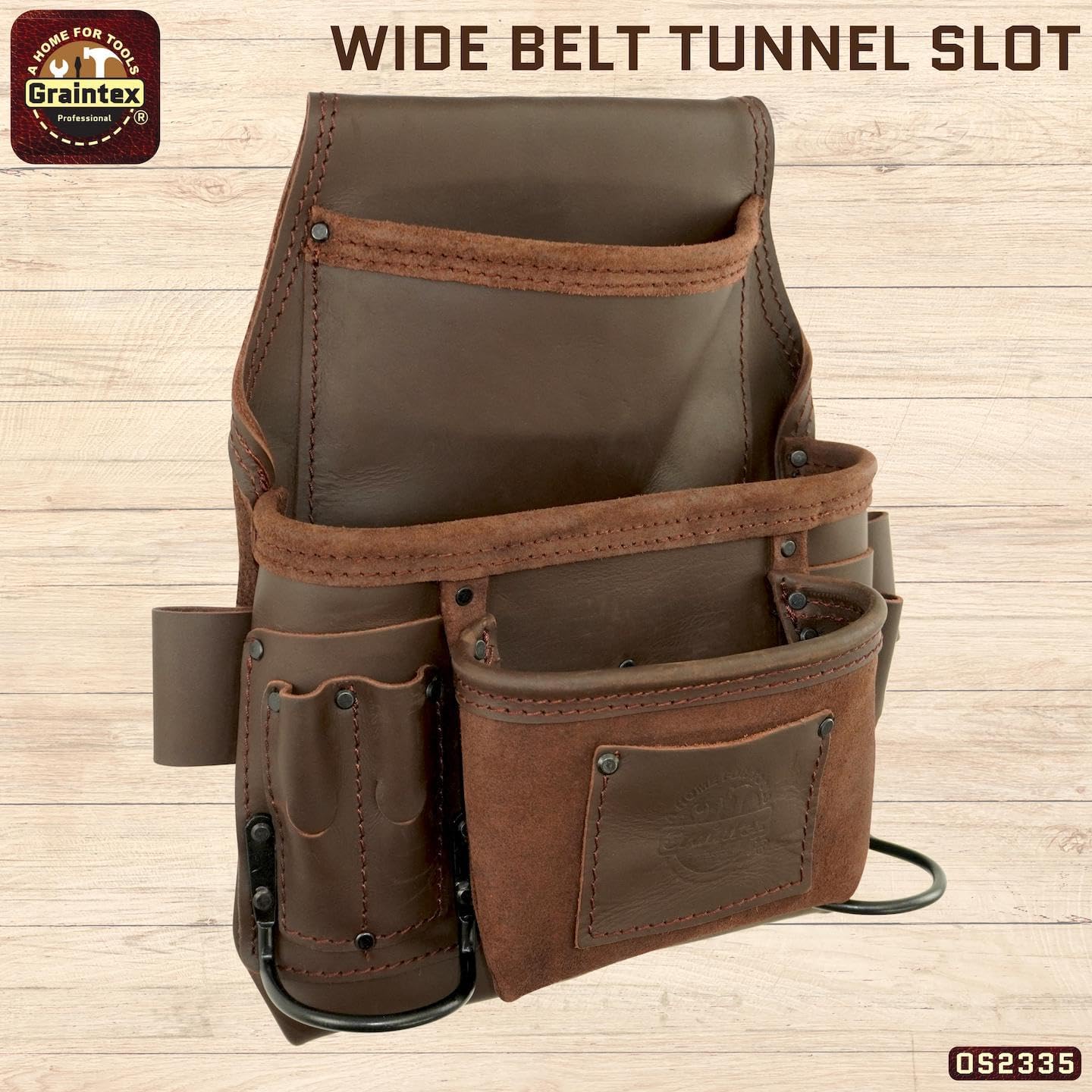 GRAINTEX DISTINCTIVE PRODUCTS are handmade by our highly expert skilled craftsmen using top quality oil tanned leather, giving our customer the satisfaction with our product that can last much longer. The 9 Pocket Nail & Tool Pouch constructed with heavy duty genuine top grain oil tanned leather that is extra soft and durable. Using the superior leather hides to prepare our exceptional line of top grain oil tanned series. This specific series is treated with the top-notch quality of chemicals and oils for extra durability and strength. This exquisite tool pouch consists of nine pockets for extra convenience, the tool pouch comes with a 3” wide tunnel slots. Designed with two steel hammer holders following with one large pocket that can hold multiple tools. One medium front pocket that can fit nails, medium-sized tools, one belt level inner pockets, and six small pockets for screwdrivers, pens, pencils, utility knife, and other miniature sets. The pockets are easily accessible, this tool pouch can be used in number of multiple other uses at the workplace or at home. With easily accessible pockets this tool pouch is a handy product for daily use. Accessories include a 3” wide belt tunnel slots for a 2.3/4” belt, two steel hammer holders fitting all standard sized hammers. This tool pouch can be used for multiple projects such as carpentry, housework, gardening, garage projects, electricians, construction, etc. This tool pouch is double stitched and reinforced with steel rivets for extra durability. Since finest heavy-duty genuine top grain oil tanned leather has been used to manufacture this tool pouch, it will withstand the wear and tear of handy life, while still rustic and elegant in the process. This product will make an excellent gift for friends, family, and loved ones. At Graintex, we are confident that this product will last a long time. It will make a thoughtful, long lasting gift for anyone and everyone. All Graintex products are handmade using the finest materials for durable and long-lasting usage. All our products are comprised with black plated hardware and heavily double stitched at every stress point with reinforced rivets to provide the durability needed in the field. Every one of our products are uniquely originated with heavy duty materials for a sturdy finish for an easier accessibility, extra longevity, and a finer preference. All our products are designed and manufactured by highly professional experienced skilled craftsmen. Graintex Inc. is a family owned company founded in 2005 and has a manufacturing unit in India. Graintex products are professionally designed for use by professionals worldwide.