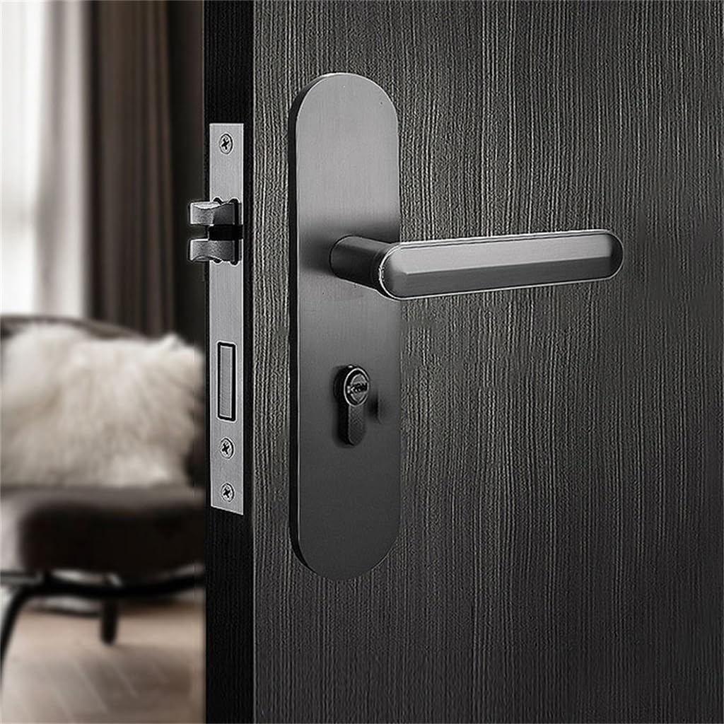 Door SwitchesThickened plate mute latchBrushed surface Electroplating process sturdy and no colour loss.Match with different shapes and styles of doors.Used for entrance doors bedrooms bathrooms interior locking doors etc.Lock side distance:4.5cmProduct Material:Zinc AlloyCentre distance:5.8cmSuitable for door thickness:38-50cmSize: as shownPacking list:1*door lock (not including other display items).Notes:1. Manual measurement please allow 1-3 cm difference.Due to the computer screen the actual colour may be slightly different from the image.Suitable for different scenarios such as warehouse door barn door and so on.