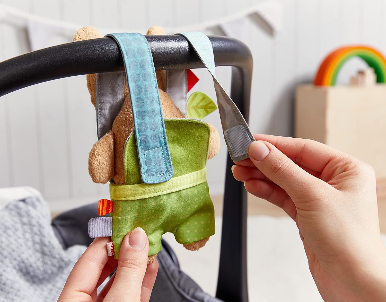 With such pants, this bear can't be more cute and funny. It can be hung in the crib, stroller or activity center, and used together or separately, with the teddy bear. It is made of soft fabrics, of different colors and textures, and includes elements that invite you to grasp and manipulate. A perfect toy from 6 months to develop curiosity and fine motor skills.