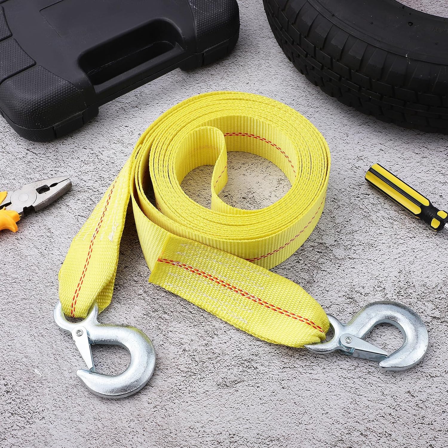 Package List 1 tow strap Characteristics -Material:Polyester -Load capacity: Built to manage considerable weight, this tow rope offers a robust load capacity that provides reliable support when moving heavy vehicles car towing rope -Size:600.00X6.00X1.20cm/235.80X2.36X0.47in -User-friendly design: Equipped with dual hooks for rapid attachment and detachment, the car tow strap is designed to save you time and trailer tie down straps -Length: 6 meters car carrier strap - durability: Constructed from polyester, this vehicle towing strap offers enduring performance and dependable service for towing car tie down strap -Rated breaking strength: 9 tons heavy duty tow straps -Versatile applications: Ideal for a wide range of vehicle types, this hauling strap can be utilized not only for towing but also for cargo transportation car trailer tie down straps -Color:Multi -Secure towing performance: With its sturdy construction and stable towing capabilities, the strap provides confidence and security during every use tow straps heavy duty with hooks -Product Info:Car trailer beltGoods Descriptioncar tow straps Tow strap with grab hooks is a must-have for any vehicle owner.truck tow straps The heavy-duty construction makes it handle the stress of towing, while the grab hooks make attachment quick and simple.car tie down strap The towing strap is designed to provide a secure and reliable hold, making it great for towing cars, trucks, and more