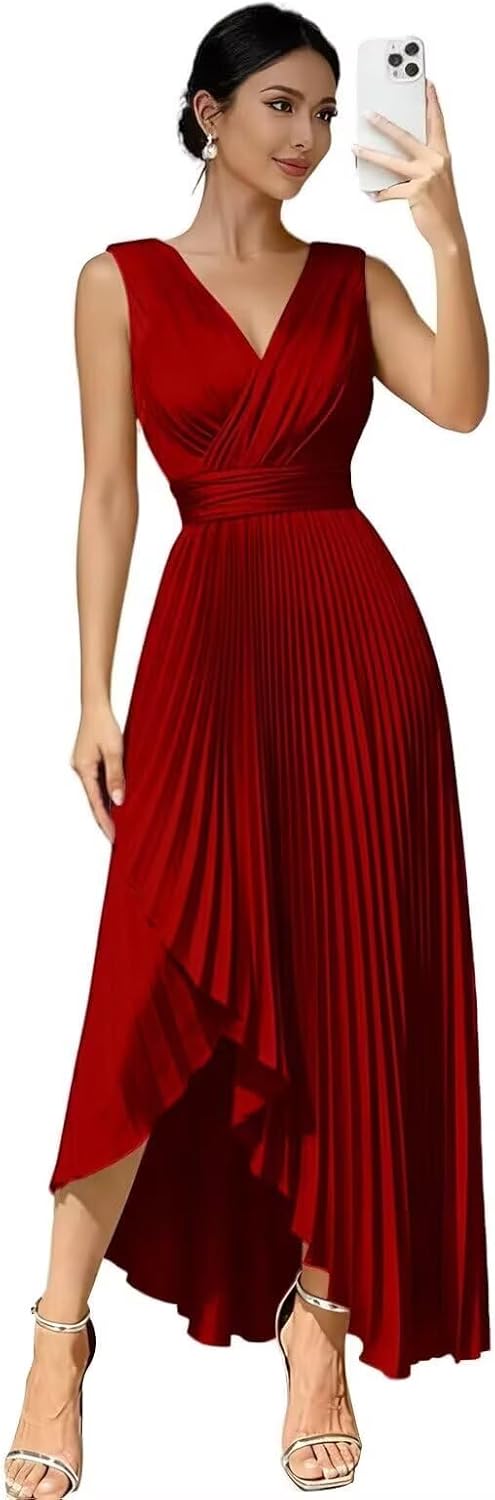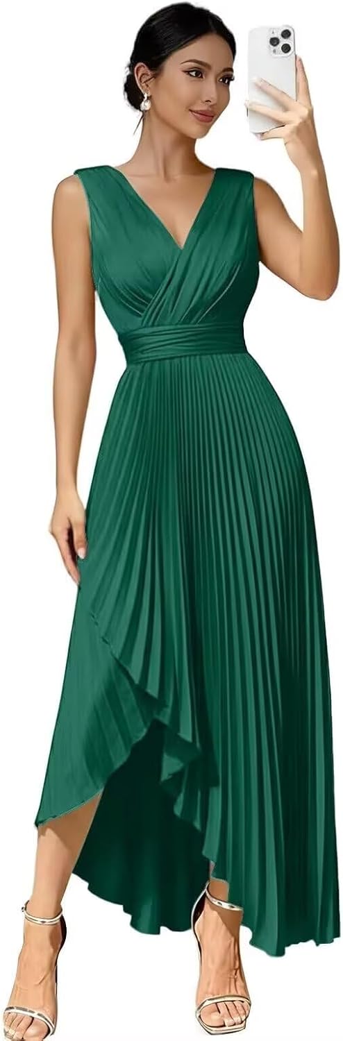 There are various styles of dresses for you to choose.Tea Length Bridesmaid Dresses Pleated Formal Dresses for Women Wedding Guest V Neck Prom Dresses Satin Evening Dresses Split Party Dresses Long Cocktail Dresses.Fabric:SatinDecoration:PleatedLength:Tea LengthSilhouette:A LineNeckline:V NeckPlease feel free contact us if you have any question about the dresses.