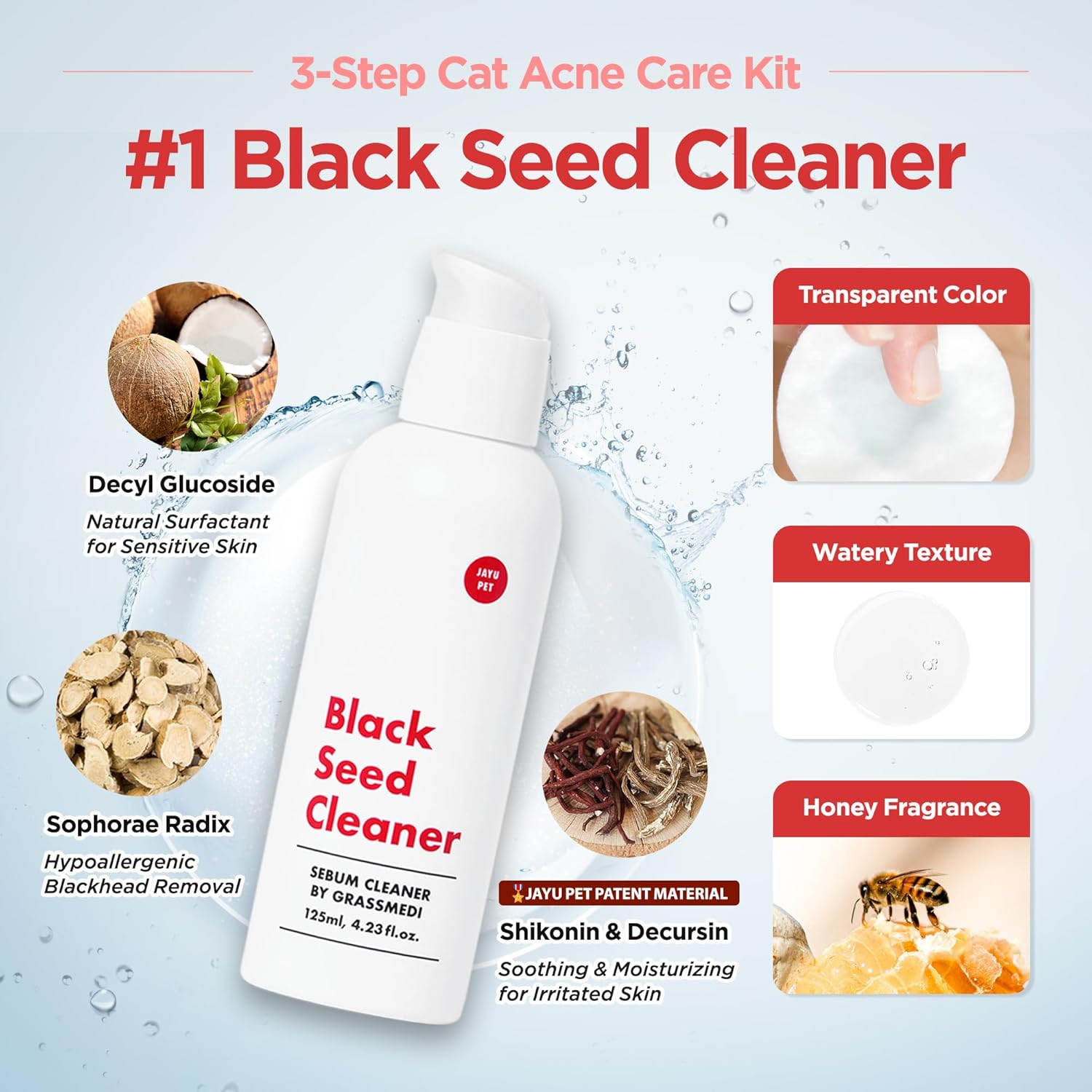 | Directions | STEP 1: [SOFTEN] Apply a generous amount of Black Seed Cleaner to the rough side of the pad and press onto targeted areas to soften blackheads and acne. STEP 2: [CLEANSE] Wipe away impurities and gently exfoliate using the Black Seed Brush for a deeper clean. STEP 3: [SOOTHE] Apply a small amount of cleaner onto the embossed side of the pad and pat onto the skin to hydrate and calm irritation. |