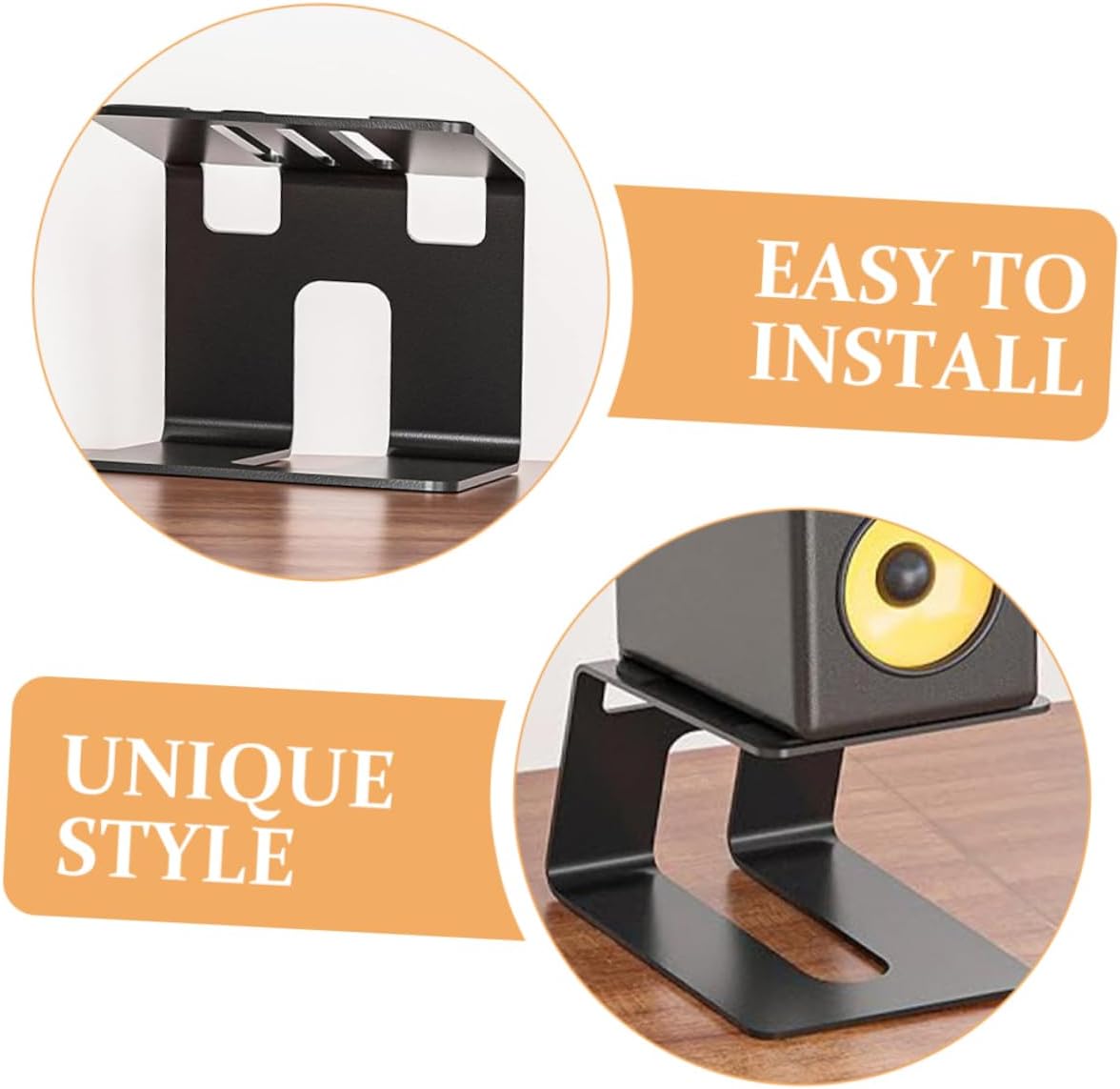 • Speaker desk holder:the desktop stands can angle speakers, ensure you experience the high fidelity of speakers,desk speaker stands