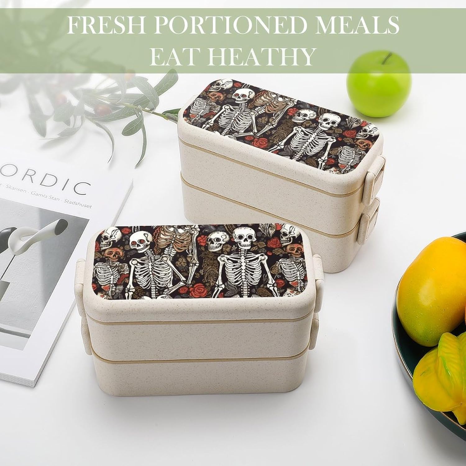 Fruit lunch box The food container is made of selected wheat fiber material,which will not emit other odors due to high temperature.It is a good helper for your daily life.The Skeletons Where Souls Meet printed food container adopts a partition design,which can separate different types of food,maintain the original flavor of the food,and plan your meal time reasonably.Integrated lunch box Small size and light texture,it will not feel bulky when put in a handbag or backpack during commuting.Portable lunch box The sealed design can reduce the possibility of accidental food spillage and odor escape,providing convenience for your dining.Travel snack box In addition to accommodating staple foods and side dishes,the large capacity can also be used to place other foods such as fruits and vegetables.Bento box set Washable and reusable.