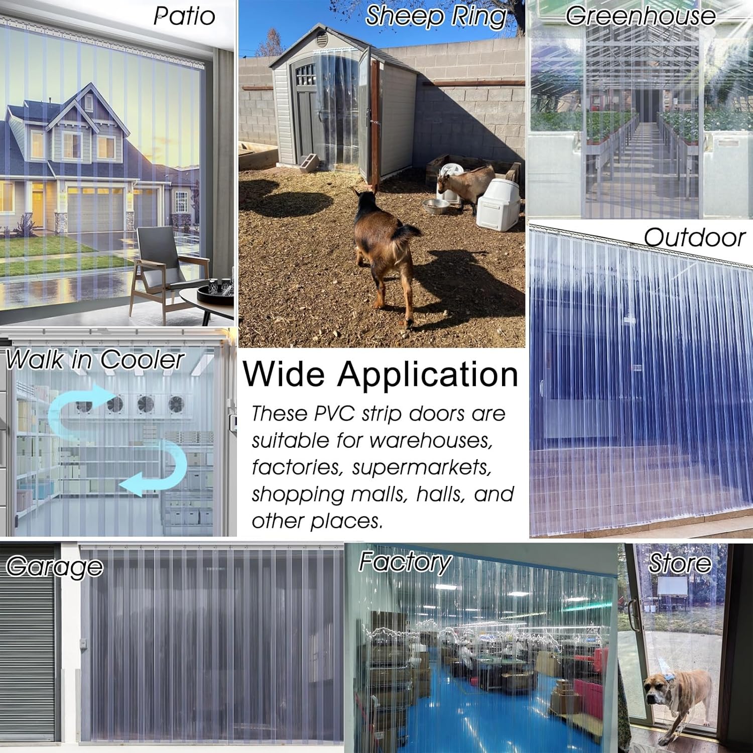 Our high-quality strip curtain is designed to enhance your environment, making it perfect for both summer and winter. Whether you're looking to maintain a comfortable indoor climate or simply want to enjoy an unobstructed view, this versatile solution has you covered.**Specifications**- **Material:** Durable PVC for longevity- **Tracks Material:** Galvanized for added strength- **Thickness:** 0.08in (2mm) for optimal insulation- **Width & Height:** Customizable to fit your unique space**Key Features**- **Clear Vision & Full Protection:** Enjoy an unobstructed view while keeping unwanted elements out.- **Weather Resistant:** Waterproof, windproof, and dustproof properties ensure your space remains comfortable year-round.- **Noise Reduction:** Helps to minimize outside noise, creating a serene environment.- **Energy Efficient:** Helps reduce heating and cooling costs, making it an eco-friendly choice.- **Easy Access:** Equipped with a flexible full magnetic stripe that allows for effortless entry and exit.- **Flexible & Convenient:** The PVC design is easy to roll up and store, making installation and dismantling a breeze.**Usage Tips**- As with many plastic products, there may be a slight odor upon arrival. Simply air it out for a couple of days, and it will dissipate.- To ensure the perfect fit, please measure your door frame before purchasing. Select the size that is closest to your measurements, opting for a slightly larger size if you're unsure.