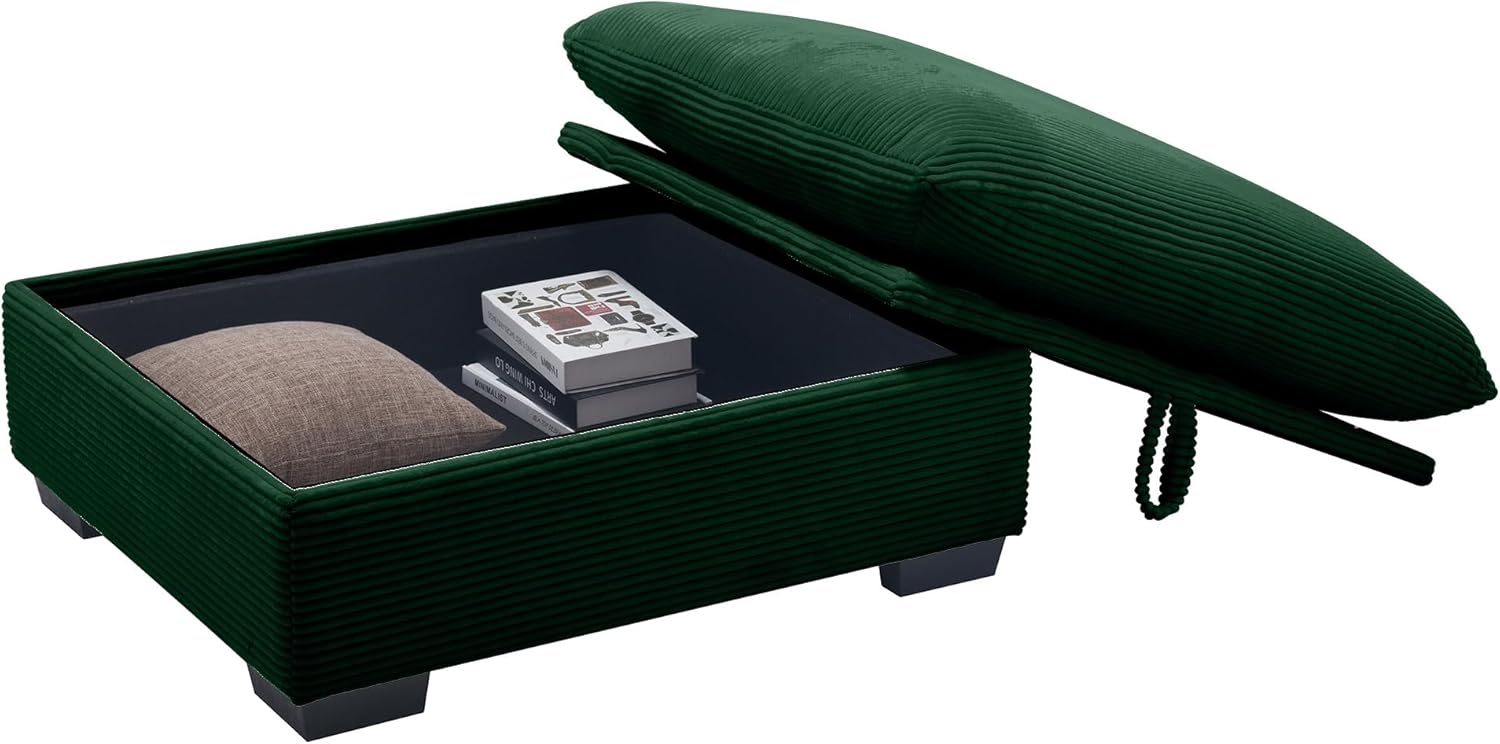 JURMALYN Ottomans Footrest for Living Room, Stool Bench Chaise Corduroy Ottoman to Combine with Sectional Sofa for Bedroom Apartment, Green