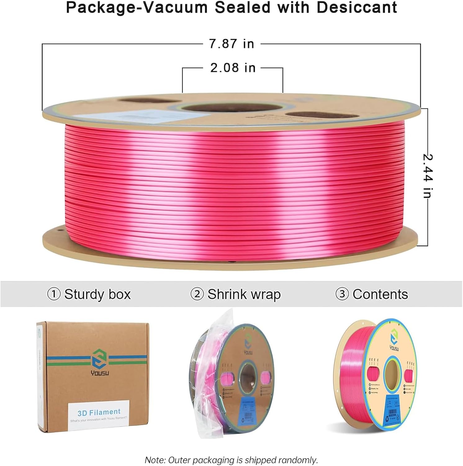 Specifications: Filament Material Type: Silk PLA Color: White, Gold, Silver, Pink, Blue (Optional) Printing temperature: 190℃~225℃ Package List: 1 x Filament