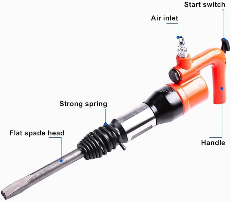Air Tool Parts & AccessoriesModel:C4Air consume:19L/SImpact frequency:35HzImpact energy:8JminCylinder diameter:25mmNoise:116dBAWeight:5.4KgColor:red / green (ramdon to shipping)With one flat spade and one tip spade