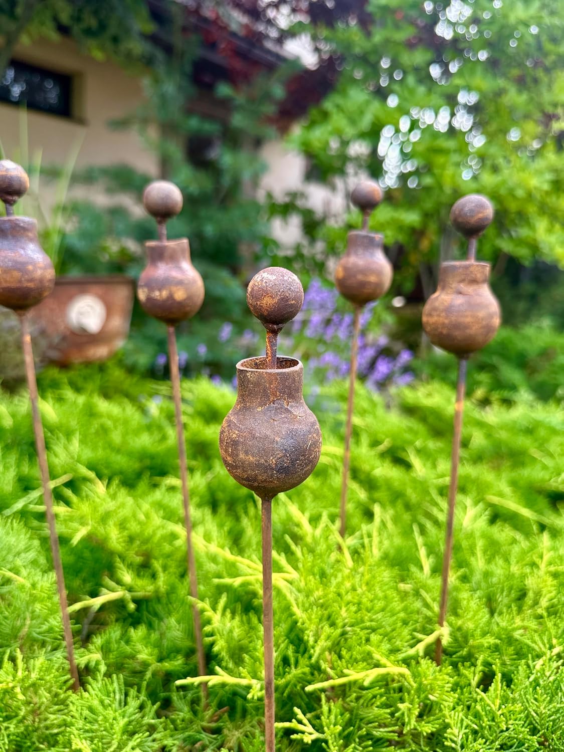 Crafted from natural metal, each flower develops a unique rusty patina, giving it a timeless, weathered charm. This durable yard art withstands all seasons—rain, snow, and direct sunlight—making it a perfect year-round outdoor decoration.