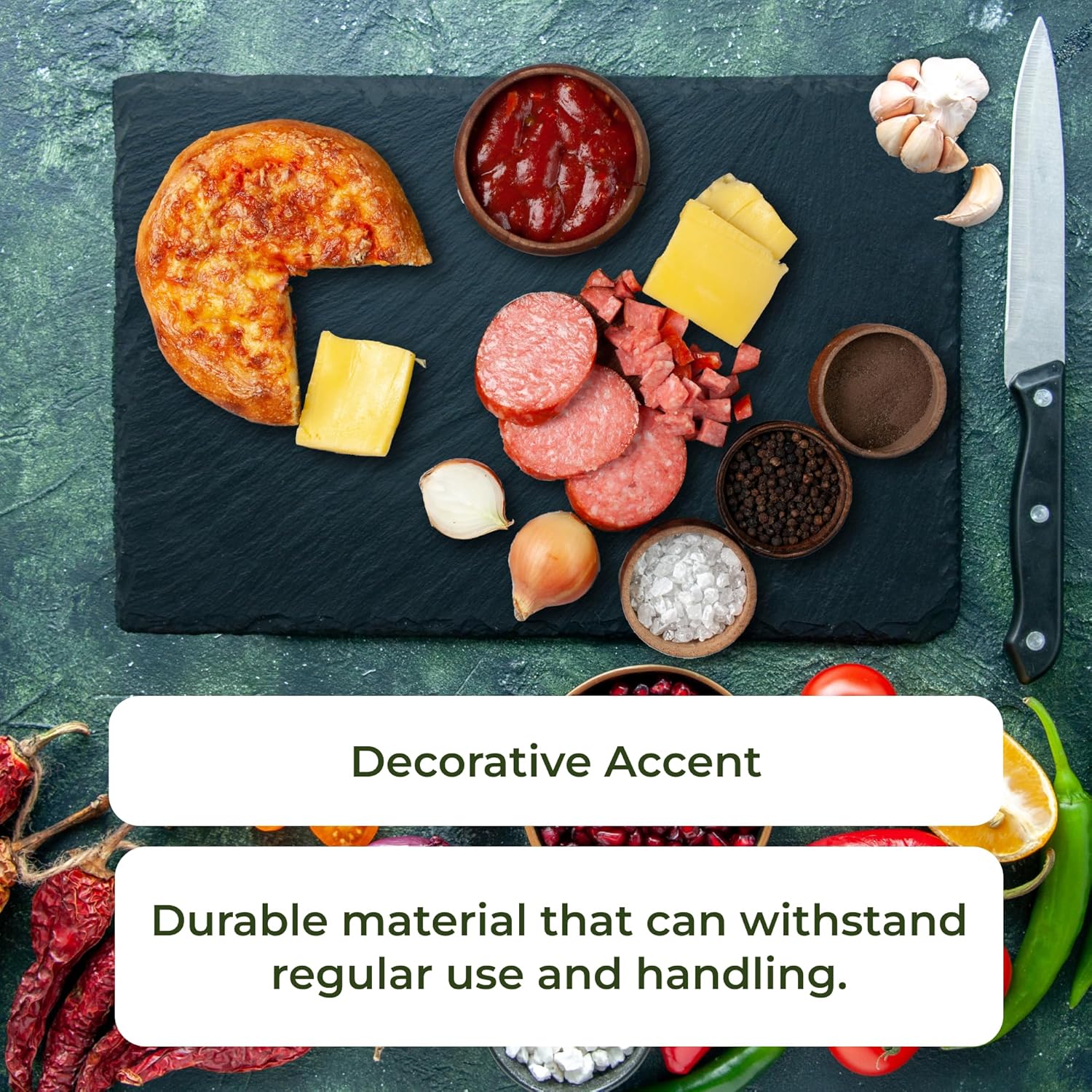 Black Slate Cheese Boards for Meat, Cheese, Appetizers – Elegant Stone Serving Trays for Parties, Housewarming – Premium Slate Serving Plates