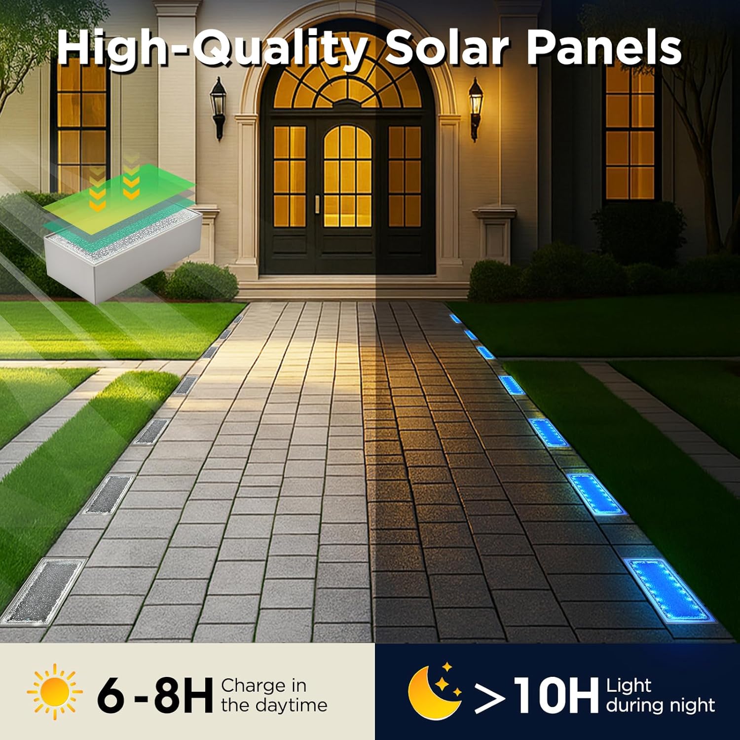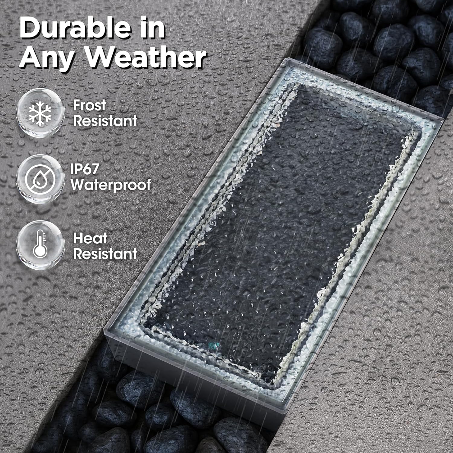1.This RGB solar paver light offers RGB & Warm White lighting modes via remote control, Warm White is ideal for everyday lighting while RGB adds vivid colors, whether it's your patio, garden, sidewalk, lawn, pool or driveway, these solar landscape lights add a touch of class to your outdoor space and create a magical evening feel! 2. Our multi-color solar paver lights are available in 16 colors, with eco-friendly solar lighting, the solar ground lights run on solar energy, so there is no extra electricity cost and no need to change the batteries, the light sensor is responsible for charging during the day and turns on automatically at night, no wiring required, the perfect solution to meet all your outdoor lighting needs! 3.The solar light has a memory function, when you set the mode the night before, it will be turned on in the same mode the next night. 4.Please put the solar light under direct sunlight for 3-6 hours before using it for the first time.