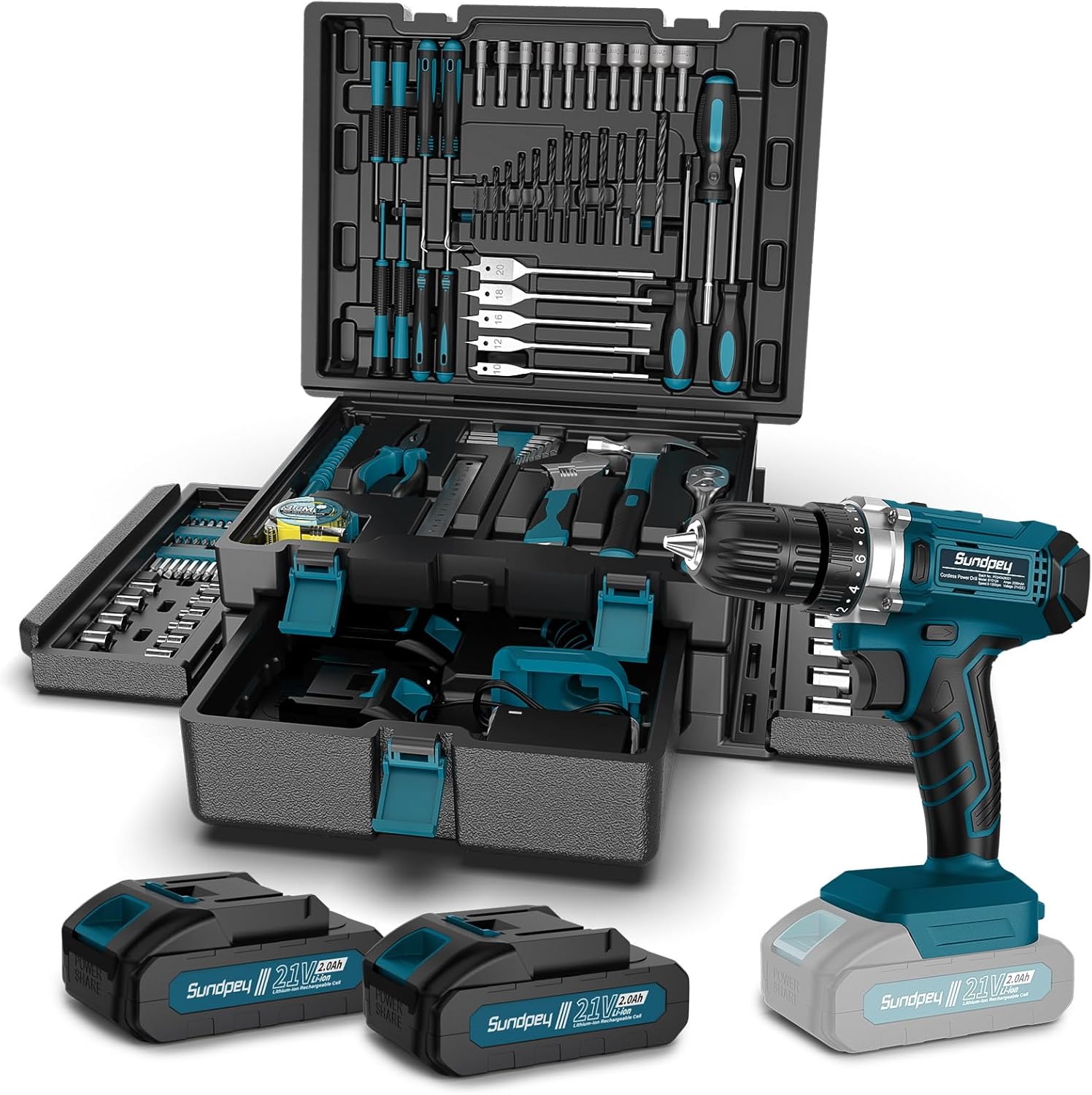 About Sundpey Tool KitThe tool kits for all purpose is smart for completing general purpose projects, repairs and maintenance at home, garage, office, or shop.All home and auto tool kit come in a sturdy, compact carrying case for easy storage and portability. Each tool fits snugly in its own place to prevent movement and scratching.Multi tool set contains all the basic and essential tools you need to assemble furniture in your home, install backyard and patio essentials, hang picture frames, fix simple plumbing problems, repair bikes and more!Whether you're working on a home project, a basic car repair project, or a basic DIY job, this essential home repair tool kit is a must-have.In addition, Blue is the special colour of this tool kit, these tool accessories are a nice present for your family and friends!