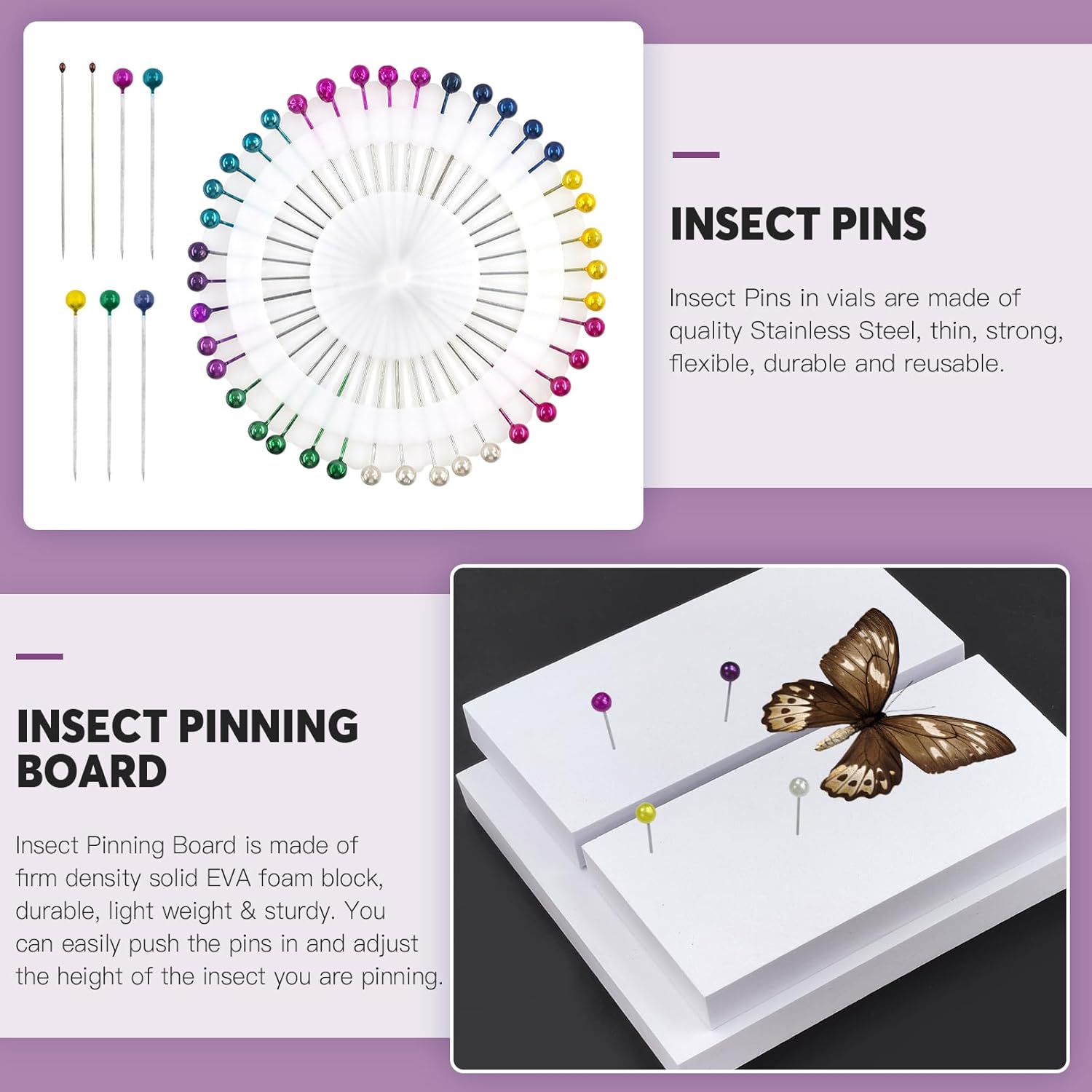 ๐ Swpeet 15Pcs Making Insect Specimen Tools Assortment Kit with Butterflies Specimen, Insect Display Case, Insect Pinning Wing Board, Scissors, Tweezer for Bug Hobbyist Biology Projects Classroom ๏ปฟ ๐ Why Choose Us? ๏ปฟ ๐ A Complete Kit โจ This kit includes all necessary tools for making insects specimen. You do not need to look for additional tools or accessories when making insect specimen. ๏ปฟ ๐ Original Butterfly Included โจ Compared to others, we have prepared two Original Butterfly for you. Suitable for beginners to practice. ๏ปฟ ๐ Wide Applications โจ Ideal for making specimens of butterflies, moths, spiders, cicadas, damselflies, dragonflies, beetles, bugs and other insects. ๏ปฟ ๐ Specifications: โจ Product Name: Insect Specimen Tools ๏ปฟ ๐ Package Includes: โจ 4Pcs -------- A5 Spreading Wings Pressing Sulfate Paper โจ 1Pcs -------- Elbow Tweezers โจ 1Pcs -------- Flat Tweezers โจ 1Pcs -------- High Density Insect Pinning Wing Board โจ 2Pcs -------- Original Butterfly โจ 1Pcs -------- Insect Display Case โจ 1Pcs -------- U Shape Scissors โจ 1Disc -------- Bead needles โจ 2Pcs -------- Insect Pins in Size #2 โจ 1Pcs -------- Glue Stick โจ 1Pcs -------- Instruction โจ Intotal 16Pcs