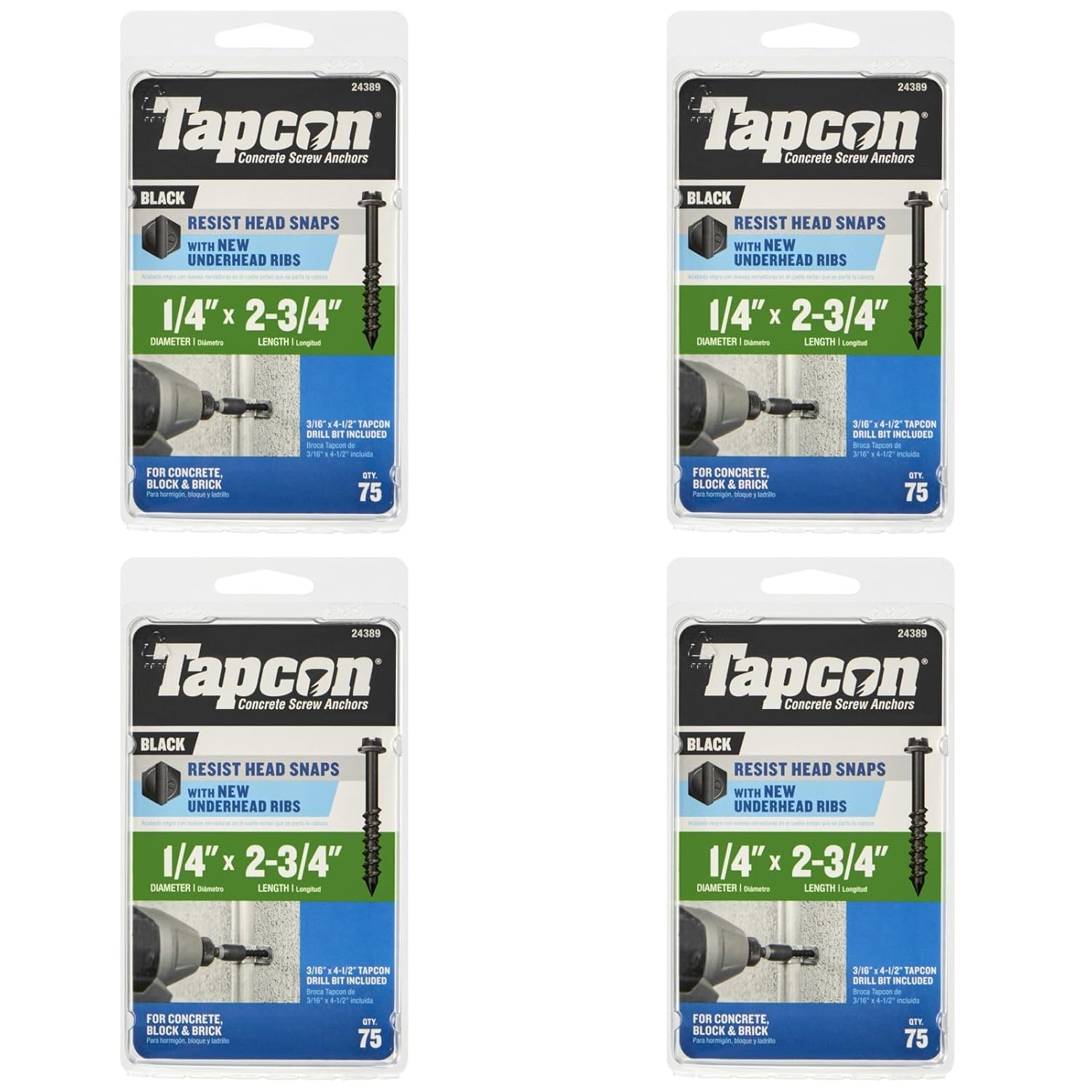| Set Name | Tapcon Black Star Head Concrete Screw Set (75 Pieces, 3/16" x 3-1/4") |