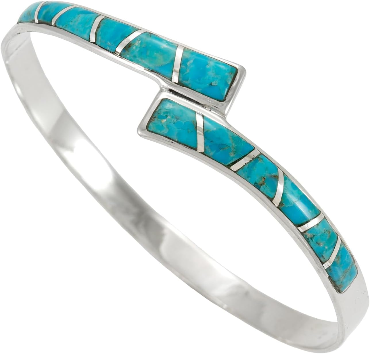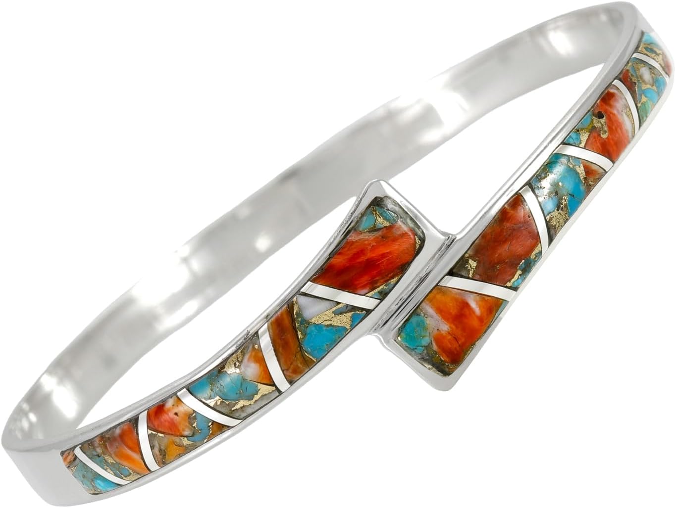 Distinctive lady's bangle bracelet for that super special occasion. Solid sterling silver and genuine gemstones. Quality craftsmanship.1/2" Wide (see ruler image). Comfortably fits most average wrist sizes 7" to 8"NOTE: Due to the nature of this material, variations in colors/shades and minor imperfections are normal. Our turquoise and coral have been stabilized, treated, and color-enhanced for beauty and durability.Imported