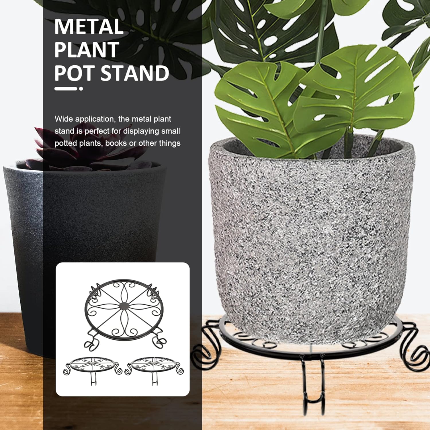 DescriptionIron Flower Pot Flower Holder Metal Plant Stand Flower Pot Stand For Home Metal Plant Stand iron plant rack Crafts Stand Flower Pot Metal Base small plant storage rack home plant holder flower pot stand potted plant stand planter stand for home Planter HolderFeatures-Size:30.80X30.80X6.50cm ;-Material:Iron;Package Including3 ร Metal Plant Stands