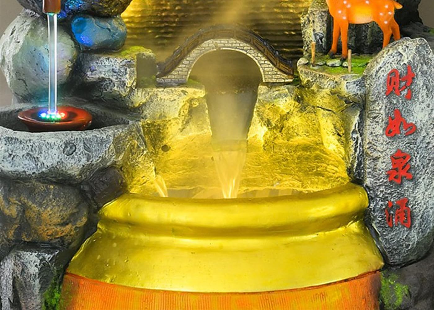 Create a Peaceful Oasis with a Zen-Inspired Waterfall Fountain Enhance the ambiance of your space with this stunning Zen Mountain Waterfall Fountain. Designed to resemble a natural mountain landscape, this fountain features cascading waterfalls, delicate bonsai accents, and intricate details that evoke a sense of serenity and balance. The integrated LED lights add a soft, warm glow, highlighting the flowing water and enhancing the fountain's beauty, especially in the evening. Perfect for both indoor and outdoor settings, this fountain brings a touch of nature and tranquility into your home, garden, or patio.