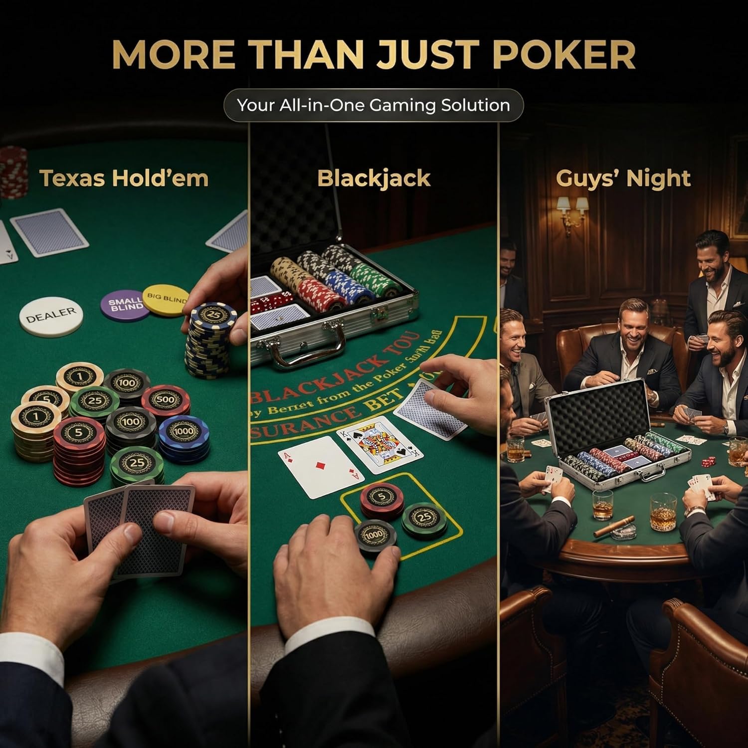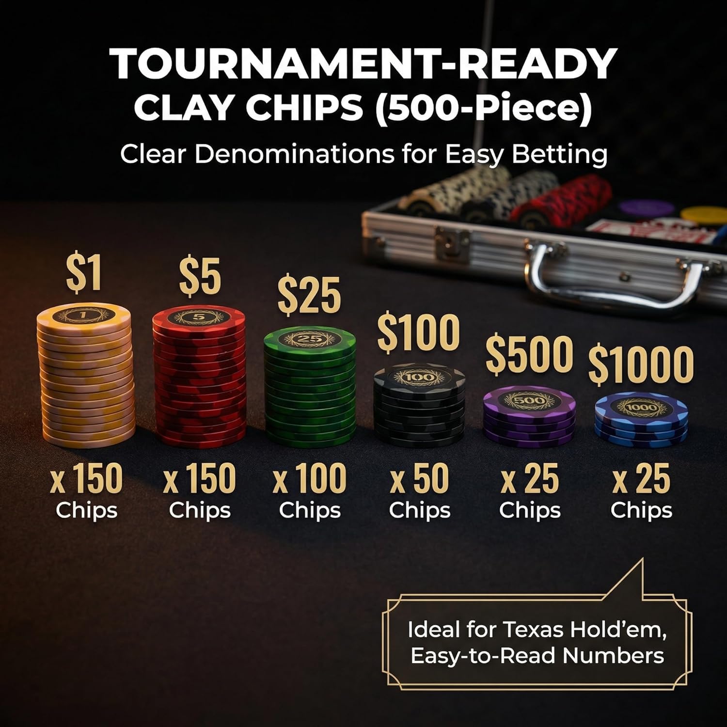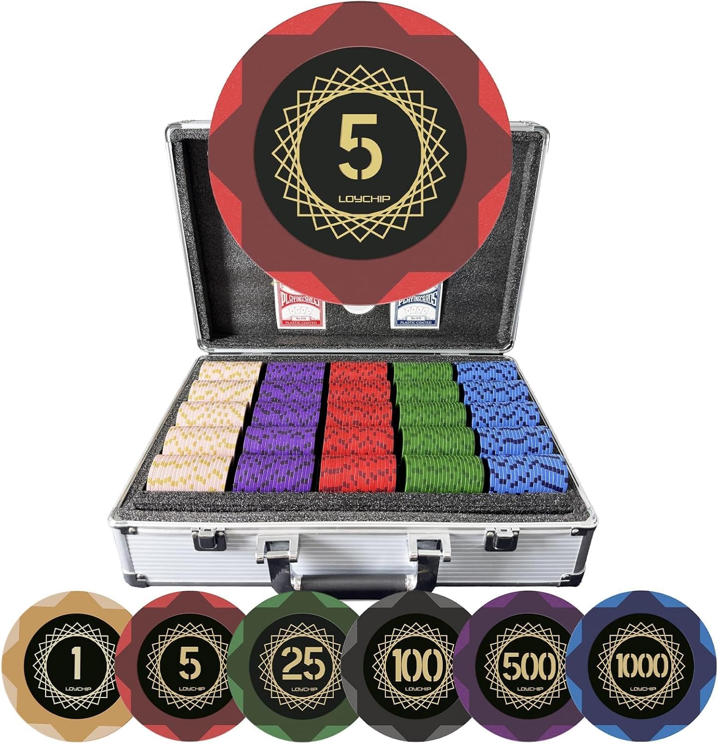 | Included Components | 500 Chips, 2 Poker Cards, 5 Dice, Small Blind, Big Blind, Dealer button, Poker Chip Case |