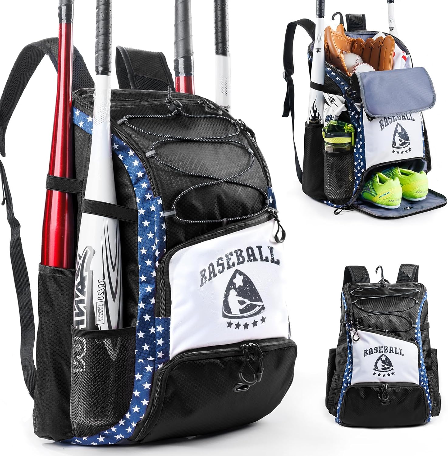 VIGEGARI Baseball Bag for Youth & Adult with 4 Bat Sleeves - Softball Bat Bag with Shoe Compartment - Baseball Backpack for T-Ball, Softball Equipment, Baseball Gear, Baseball Bags for Boys 8-12