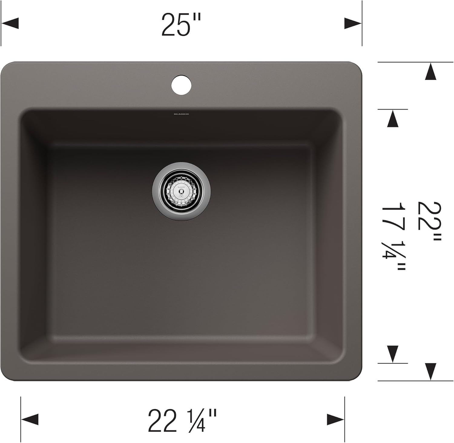 ઑ BLANCO 443224 Liven SILGRANIT 25" Single Bowl Drop-In/Undermount Kitchen Sink - Volcano Gray