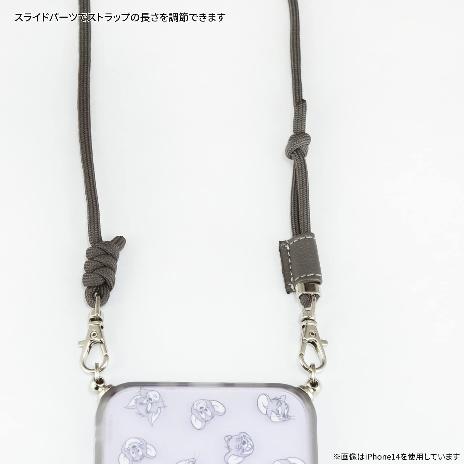 This case has a strap loop that covers the back of the iPhone 14 Pro and iPhone 13 Pro models. Impact resistant type with a hybrid structure of PC + TPU Prevents scratches and protects against minor vibration and impact. The shape is designed to be easy to hold, and the flexibility of the TPU material is unique to the rubber for a superior grip. With a strap loop, you can keep your phone from falling out and carry it in fashion. The length of the strap itself is about 70cm (when using). Adjustable slider for desired length. The color of the actual product may differ slightly from the product depending on your monitor settings, lighting in the room. Due to various circumstances, the design and specifications may change without prior notice. TOM AND JERRY and all related characters and elements © & ™ Turner Entertainment Co. (s23)