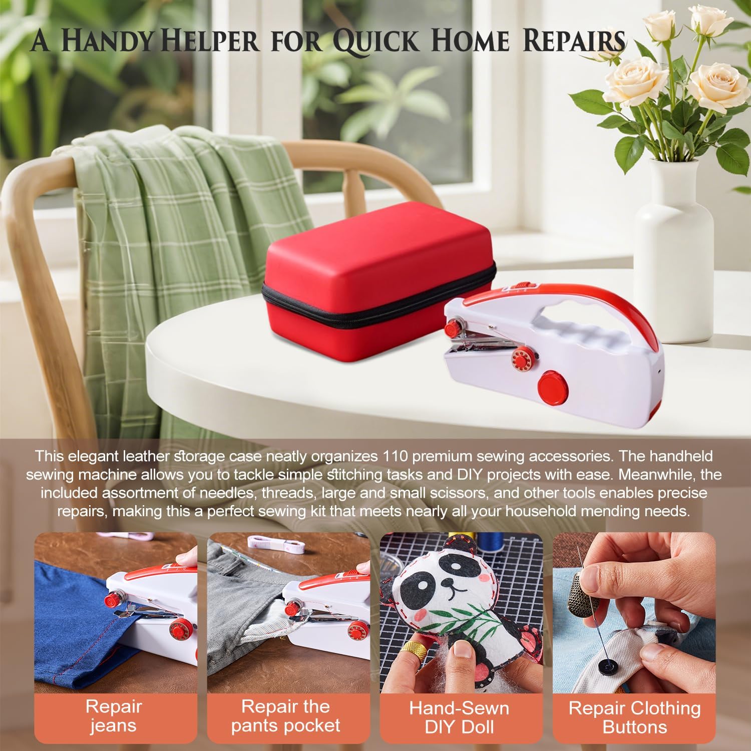 | Set Name | Hand Held Sewing Machine Heavy Duty with 110 PCS Sewing Kit & Red Leather Case |