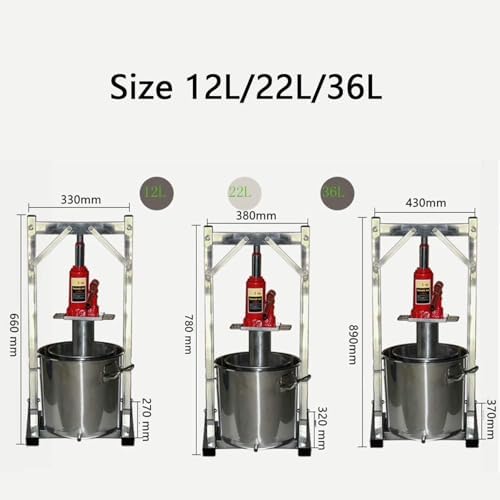 Introducing our premium Hydraulic Fruit and Vegetable Press, designed to streamline your juicing experience while maximizing extraction efficiency. Crafted from durable 304 stainless steel, this press combines strength and longevity, ensuring it withstands the rigors of regular use. Using the press is simple and effective. Start by placing the outer bucket into the bracket, followed by the filter bucket. Add your favorite fruits or vegetables—ensure they are cut into manageable sizes for optimal extraction. With a maximum pressure of 3 tons (6613.87 lbs), this press effortlessly squeezes every drop of juice, making it ideal for home juicing, small businesses, or community events. The press comes in three sizes: 12L, 22L, and 36L, accommodating various production needs. Whether you're preparing fresh juice for a family gathering or creating delicious preserves, this tool enhances your kitchen efficiency. The pressure plate, with a thickness of 5mm, provides even pressure distribution, ensuring maximum juice yield while maintaining the integrity of your ingredients. Assembly is straightforward, making it accessible for everyone. Each package includes an outer bucket, filter bucket, hydraulic jack, and bracket—everything you need to get started on your juicing journey. For safe operation, remember to keep the jack clean and lubricated, and avoid overloading for optimal performance. This versatile hydraulic press is perfect for health enthusiasts looking to enjoy fresh, homemade juices without the hassle. Its robust design and ease of use make it a valuable addition to any kitchen. Elevate your juicing experience today and unlock the full flavor potential of your fruits and vegetables with our Hydraulic Fruit and Vegetable Press. Please note that this product is not designed for hard substances like nuts, and we recommend cutting ingredients to appropriate sizes before use. Enjoy the benefits of fresh juice and the convenience of easy cleanup, making it a mus...