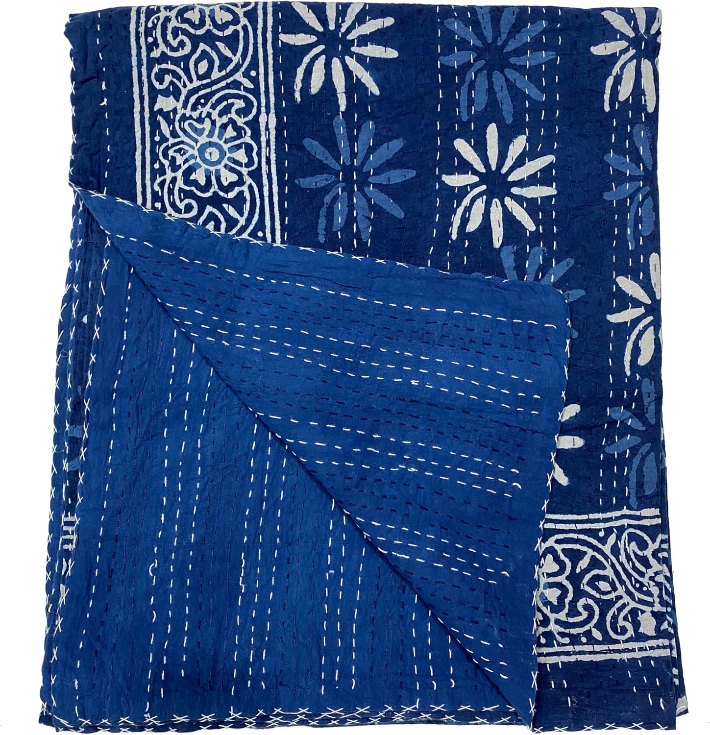 ★DESCRIPTION:- Kantha (meaning: “patched cloth”) refers to both the tradition of producing these unique, quilted blankets (making something useful and beautiful out of discarded items), as well as the craft and stitch itself (With so many blankets that we refer to as “kantha throws”, "kantha quilts", "indigo kantha", or "kantha blankets"). ★PURE COTTON JAIPURI KANTHA QUILT KING SIZE BEDSPREAD:- We provide innovative, well designed products and a unique human experience. While shopping at vintage Kantha Quilts you will not only support the artisan that made the product, but will also connect yourself into a small piece of their life stories through our Blog section. ★PATTERN: TRADITIONAL ADITIONAI KANTHA PRINT:- Indian Handmade Traditional Patch Work Cotton Kantha Quilt Queen Bedspreads Throw Blanket (Multi Floral) Bohemian Bedspread , Bohemian Bedding , Handmade Kantha Quilt Available in Single pcs and Whole sale price For Indian, USA and European Market.Made with 100% premium quality cotton fabric. ★DYNAMIC TRADITIONAL MOTIFS:- The designs and embroidery you find on these quilts are also unique. There are various kinds of prints that Rae famous and sought after when it comes to Jaipuri Razai, includes Sanganeri print, Mughal print, Hand-Block Print, Gold Print, and Machine Stitched and Quilted. ★PRODUCT FEATURES:- Hand-Stitching by the Local Artisans. Cotton Voile Spreading. Hand Printing and Handmade kantha. Jaipuri Kantha Quilt king Size Bedspread are made from 100% cotton in india. Super soft&cozy and reversible. ★WASHING INSTRUCTION (WASHALE):- Cycle: delicate/hand wash, normal or set it to blanket wash.Use a mild detergent (eco-friendly, cruelty-free ).Temperature: cold to 30°C (max.) ★Package Content:- Make with 100%cotton printed fabric,