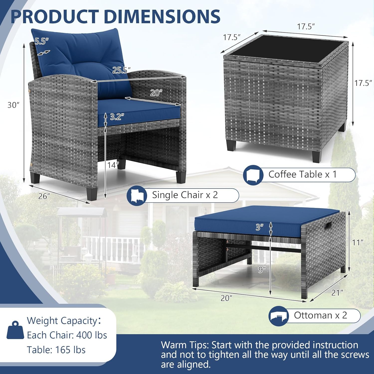 | Included Components | - 1 x Instruction, - 2 x Back Cushion, - 2 x Ottoman, - 2 x Seat Cushion, - 2 x Single Chair |