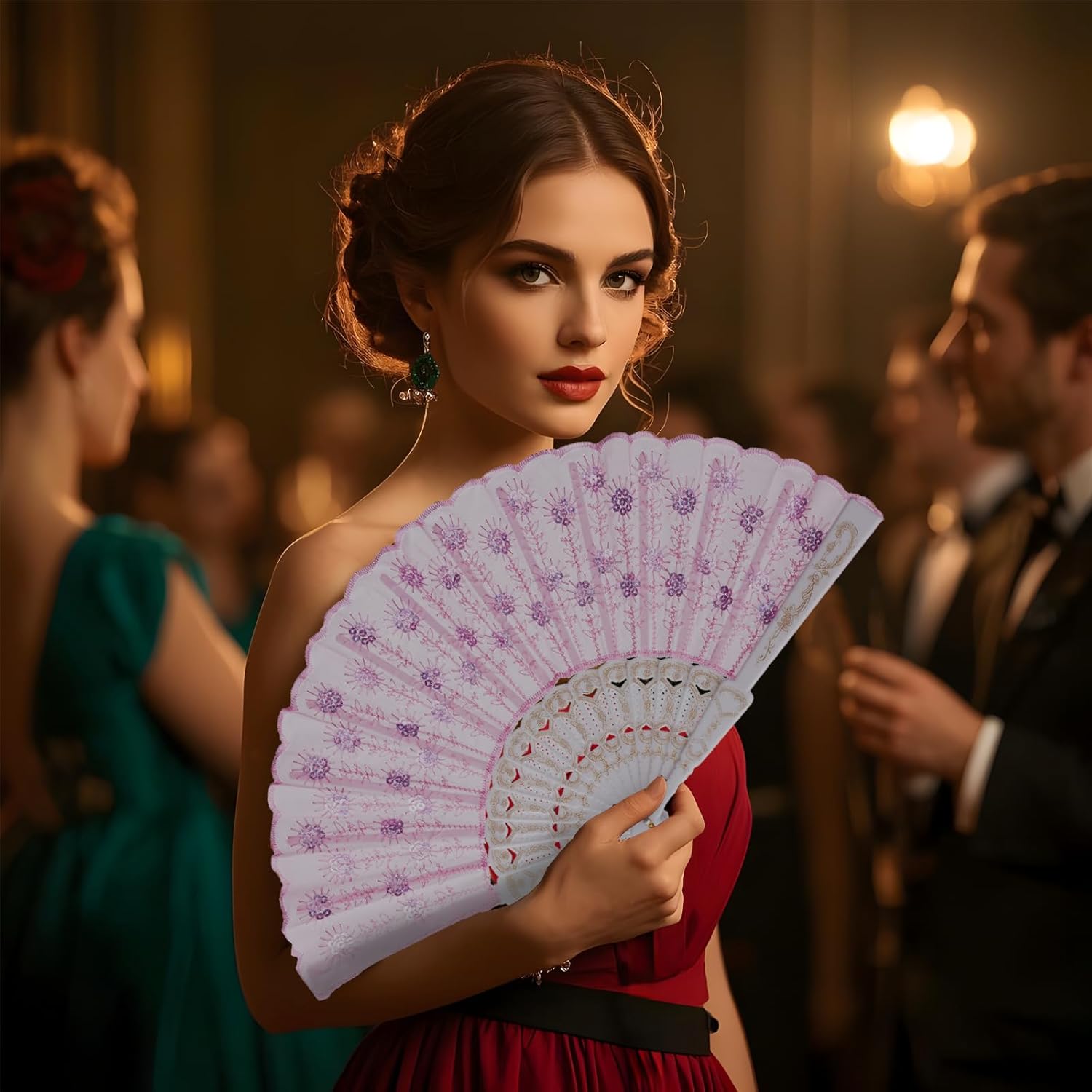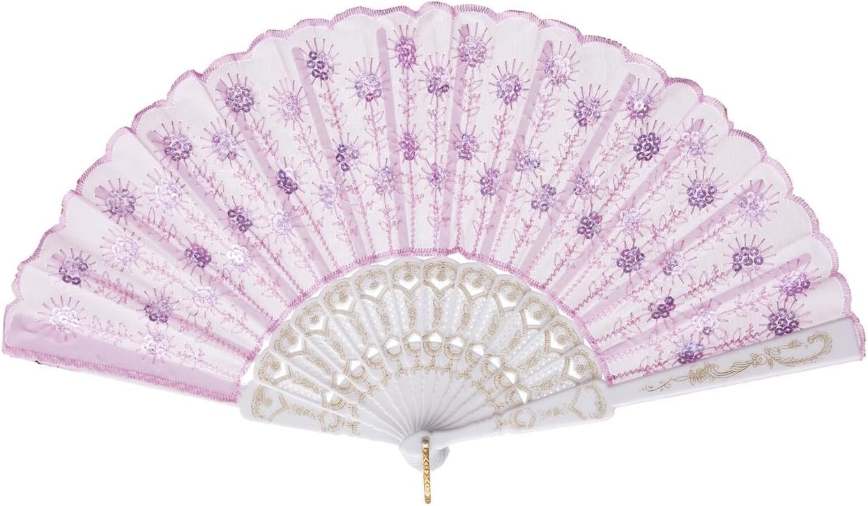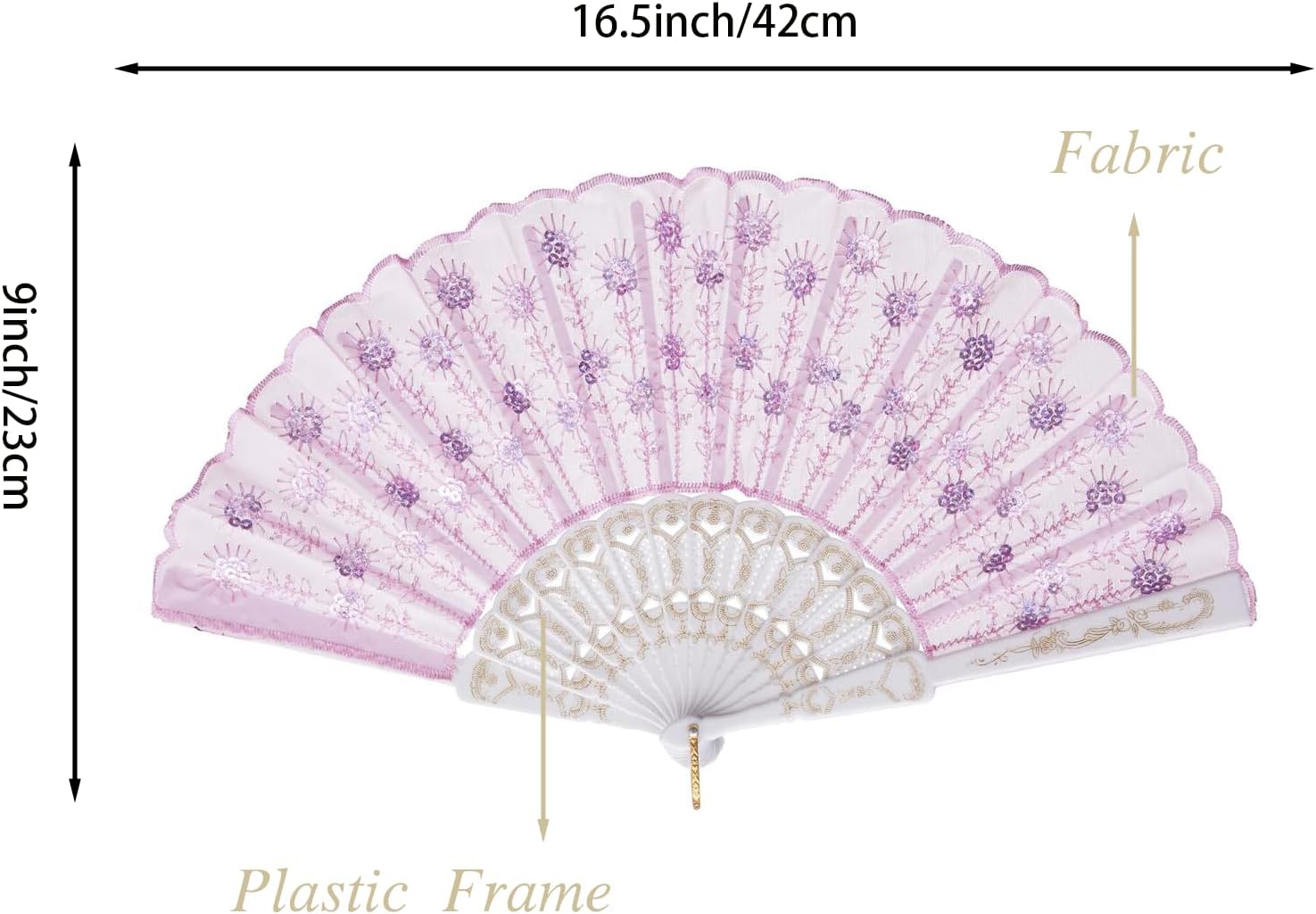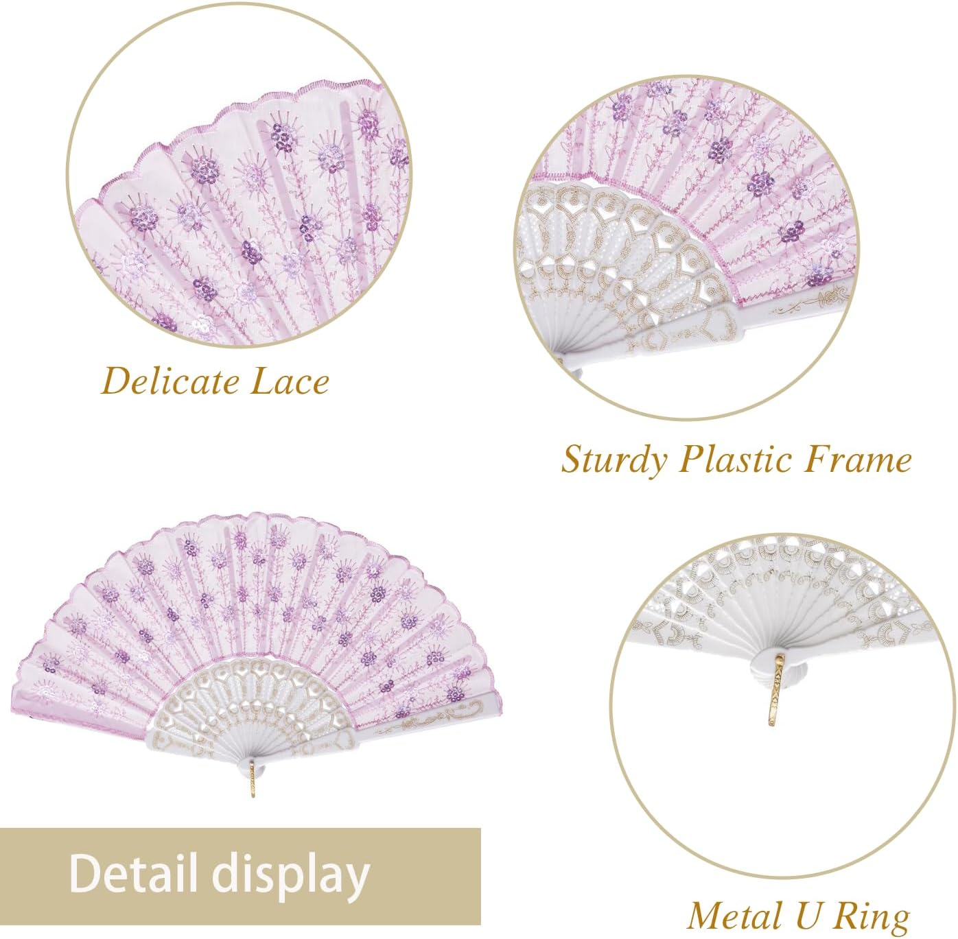 These stunning floral hand fans are the perfect accessory for adding a touch of elegance to any event. Made from high-quality fabric with peacock pattern, each fan is carefully crafted to ensure durability and beauty. The delicate lace trim and intricate hollow carved plastic staves make these fans a true work of art. With a convenient metal U ring handle, they are easy to hold and open. Whether you're attending a wedding, enjoying a night of dancing, or hosting a memorable party, these folding hand fans will keep you cool and stylish. Compact and lightweight, you can easily carry them in your bag for whenever you need a refreshing breeze. Don't miss out on the opportunity to own these fashionable accessories.