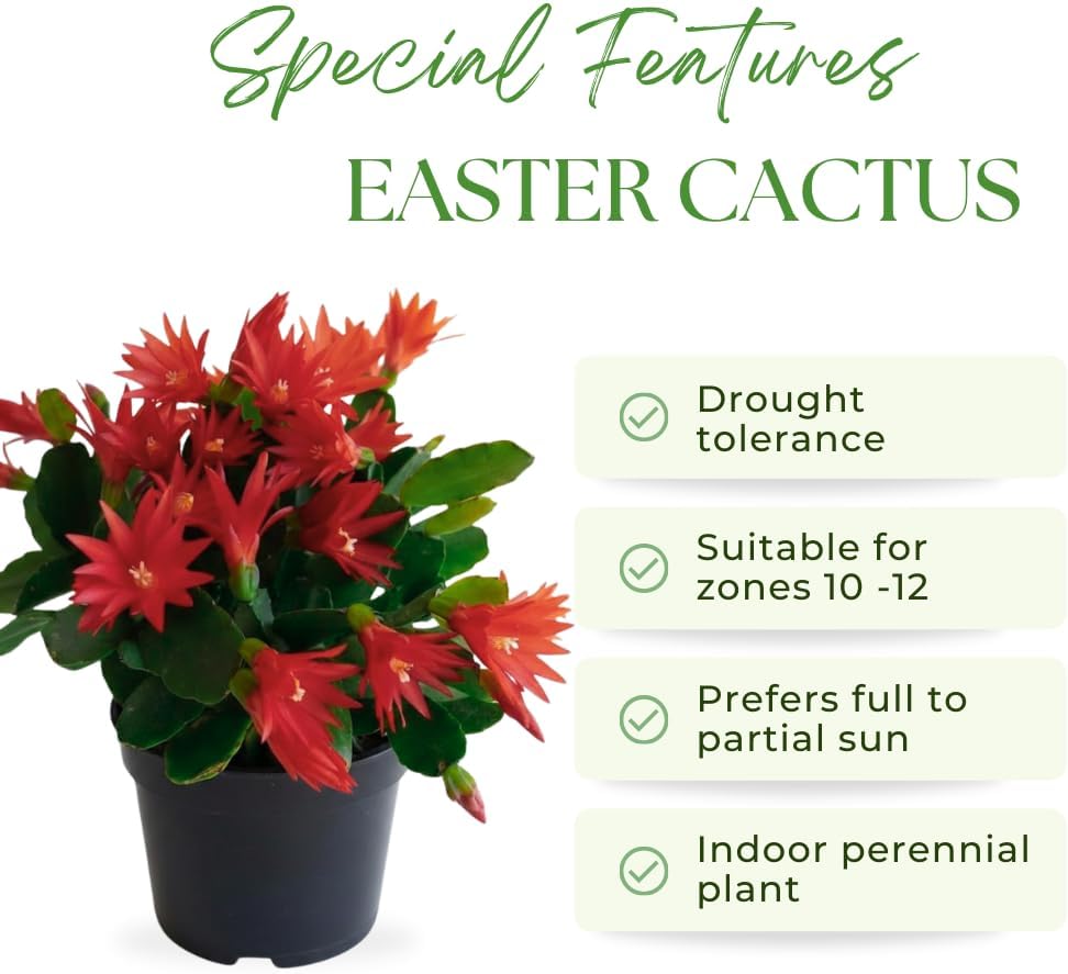 Red Easter Cactus Plant Live, Spring Cactus Plant Live, 4 Inc Pot, Vibrant Holiday Cactus for Home Decoration